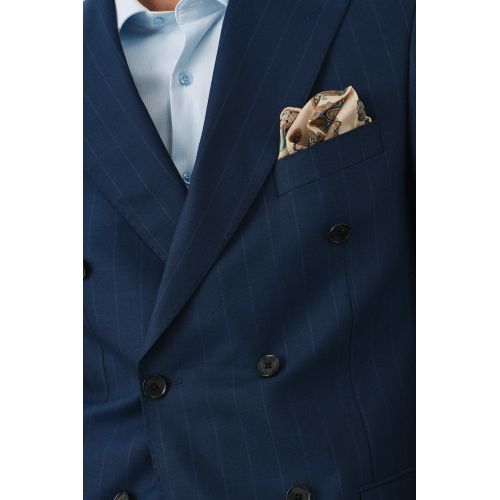 Платок нагрудный в карман светло-бежевый в голубой принт пэйсли