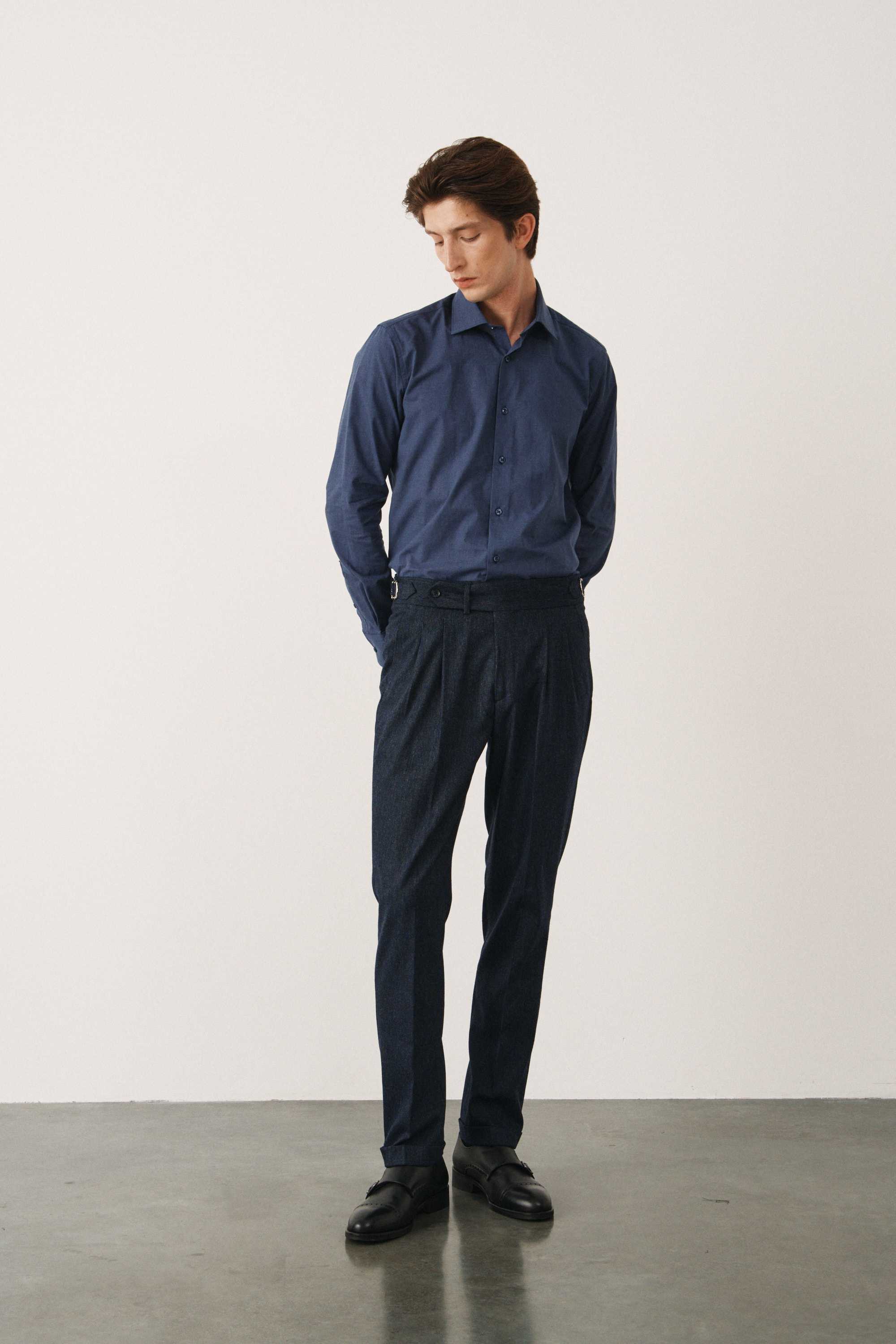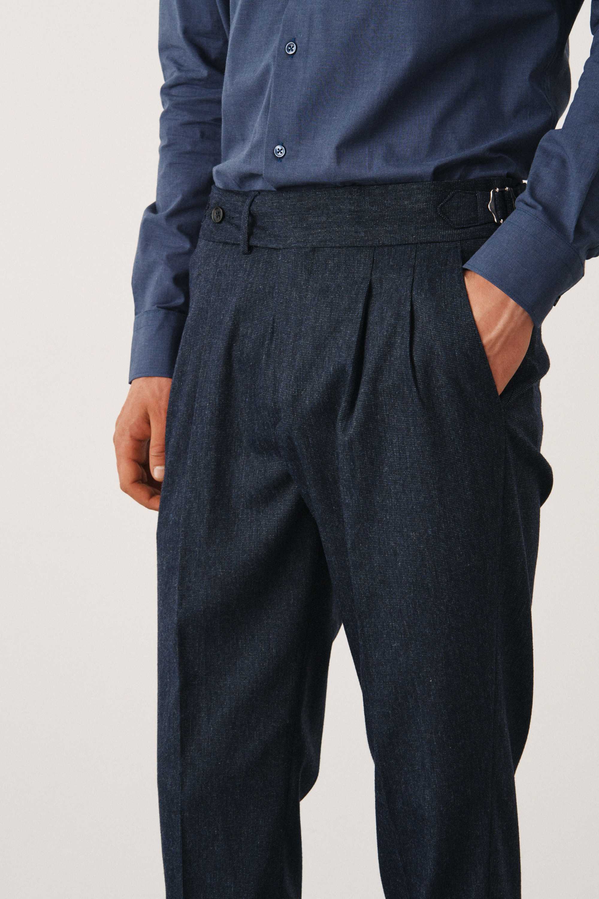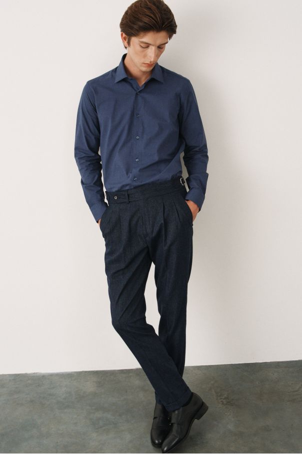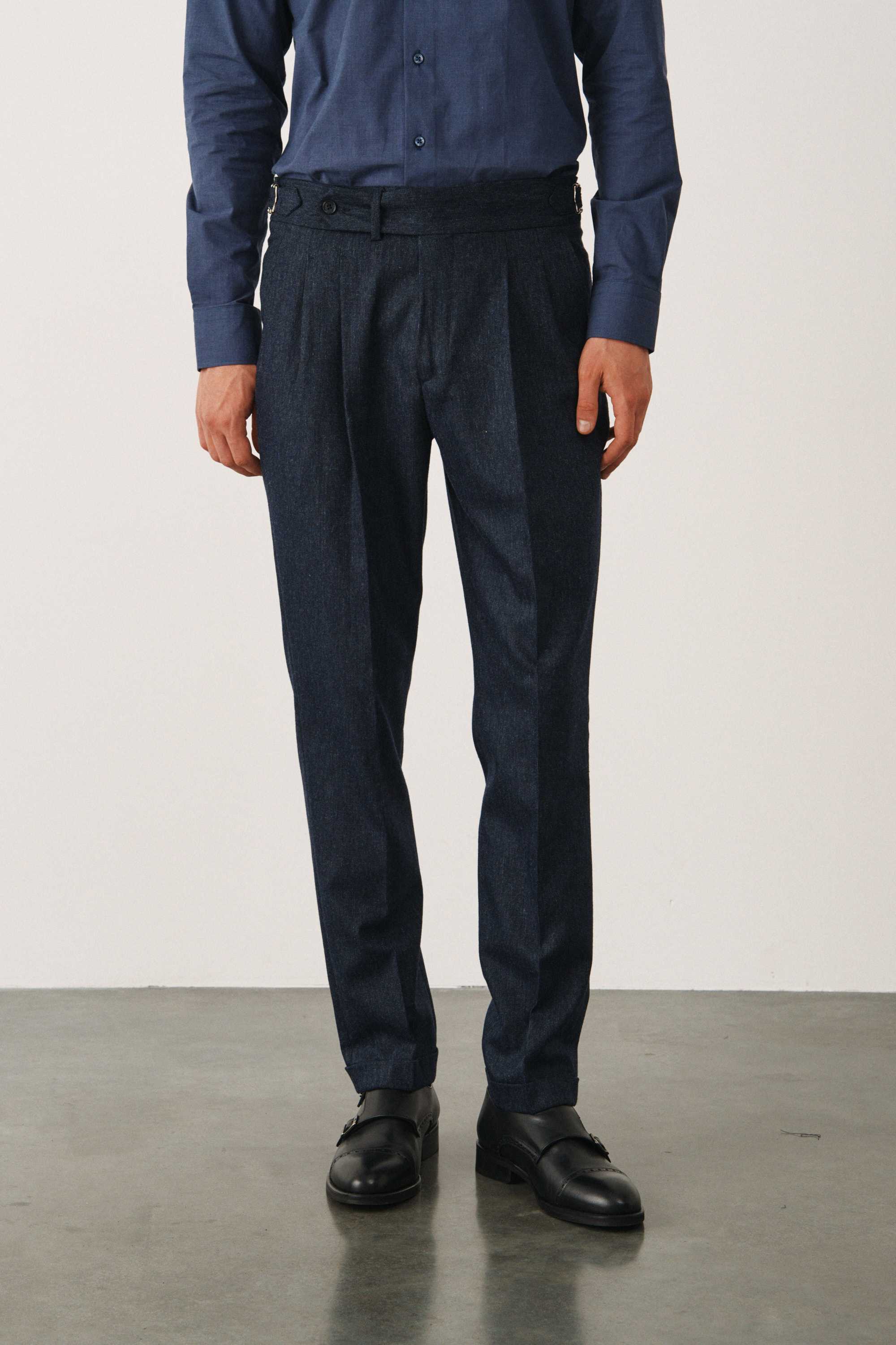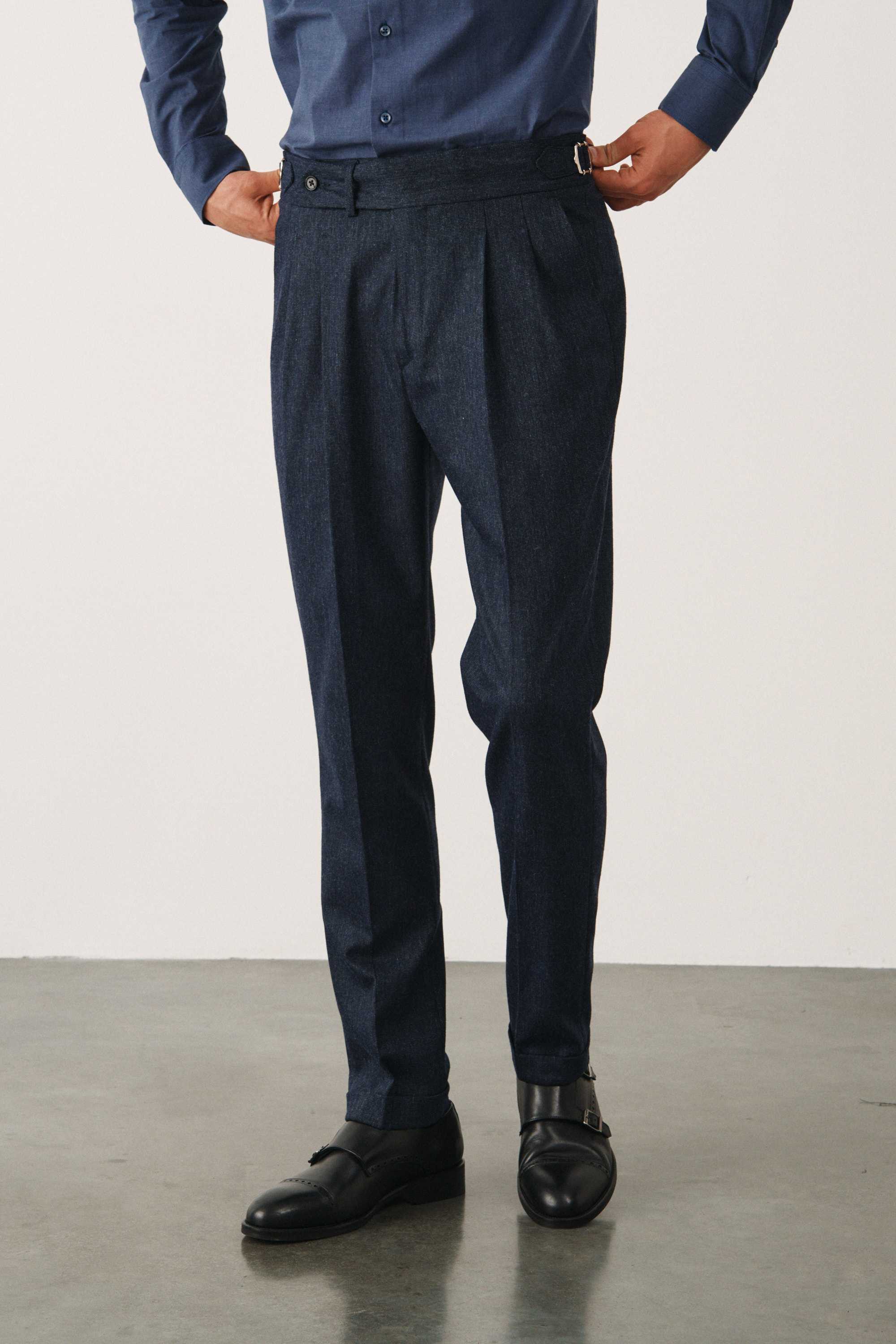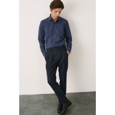 Брюки синие из плотной фактурной ткани с защипами