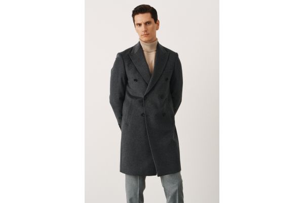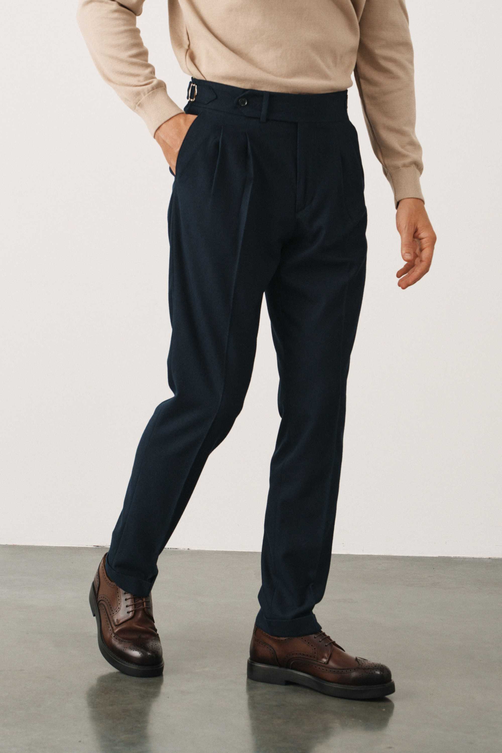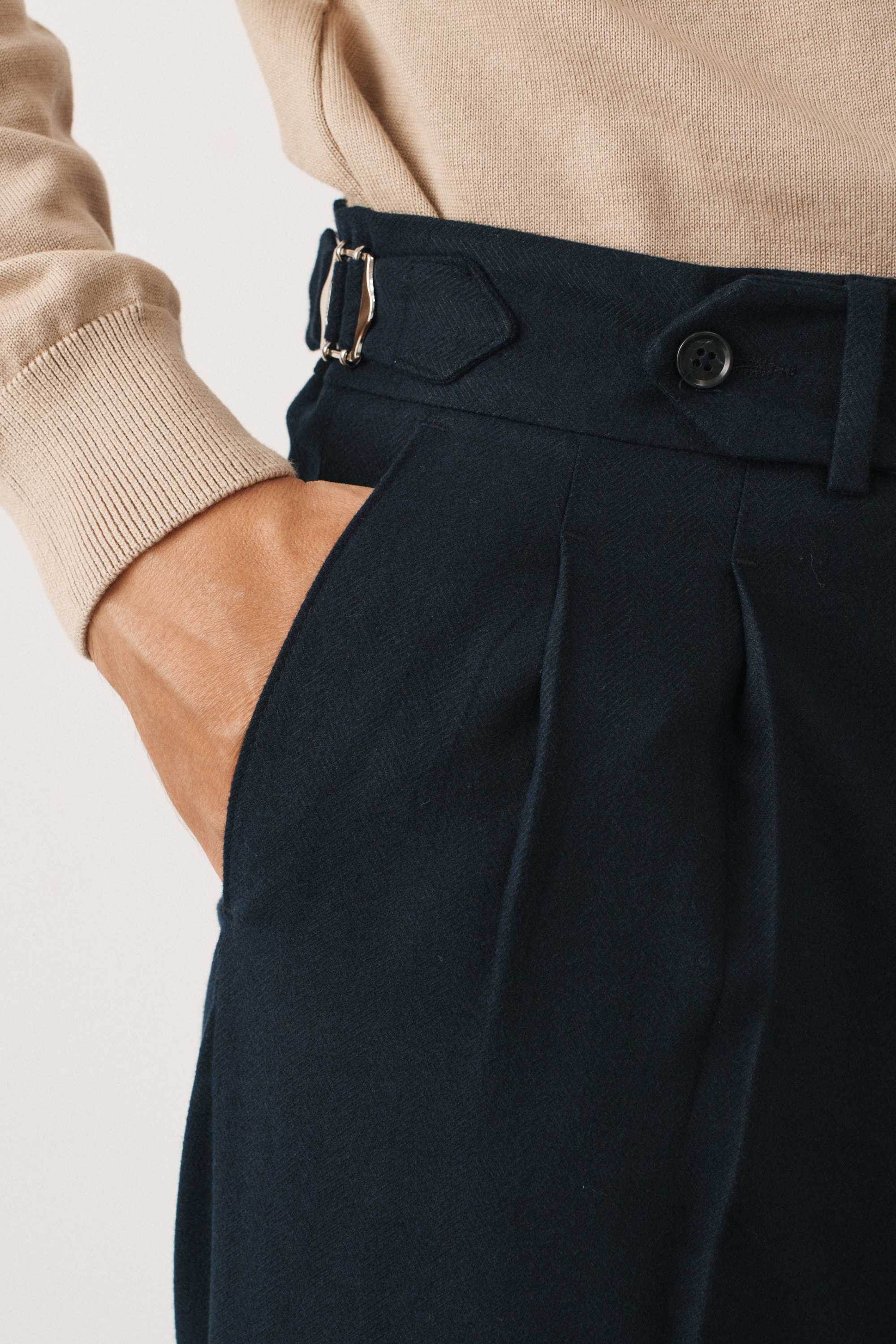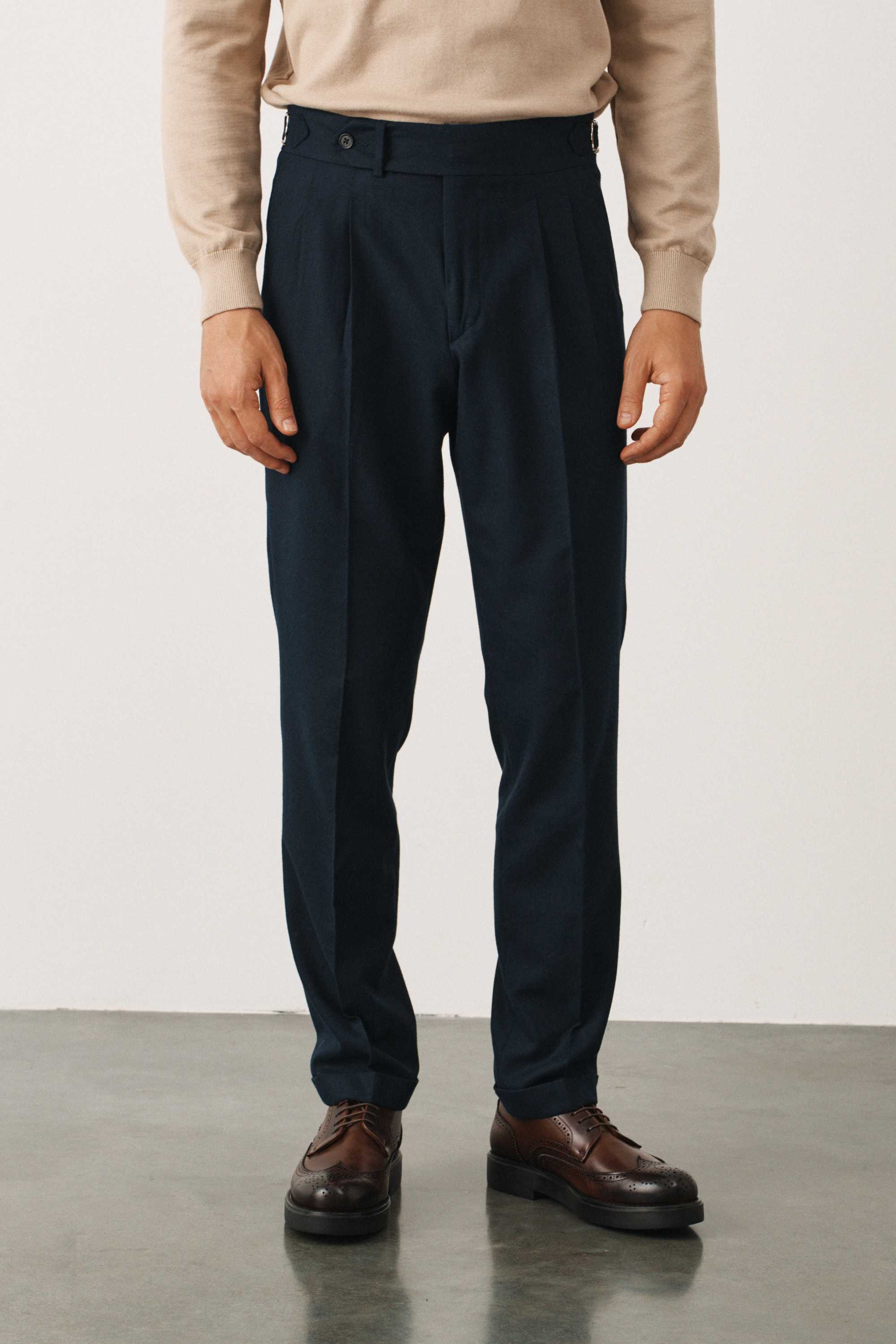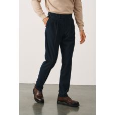 Брюки синие в елочку из мягкой фланели с защипами