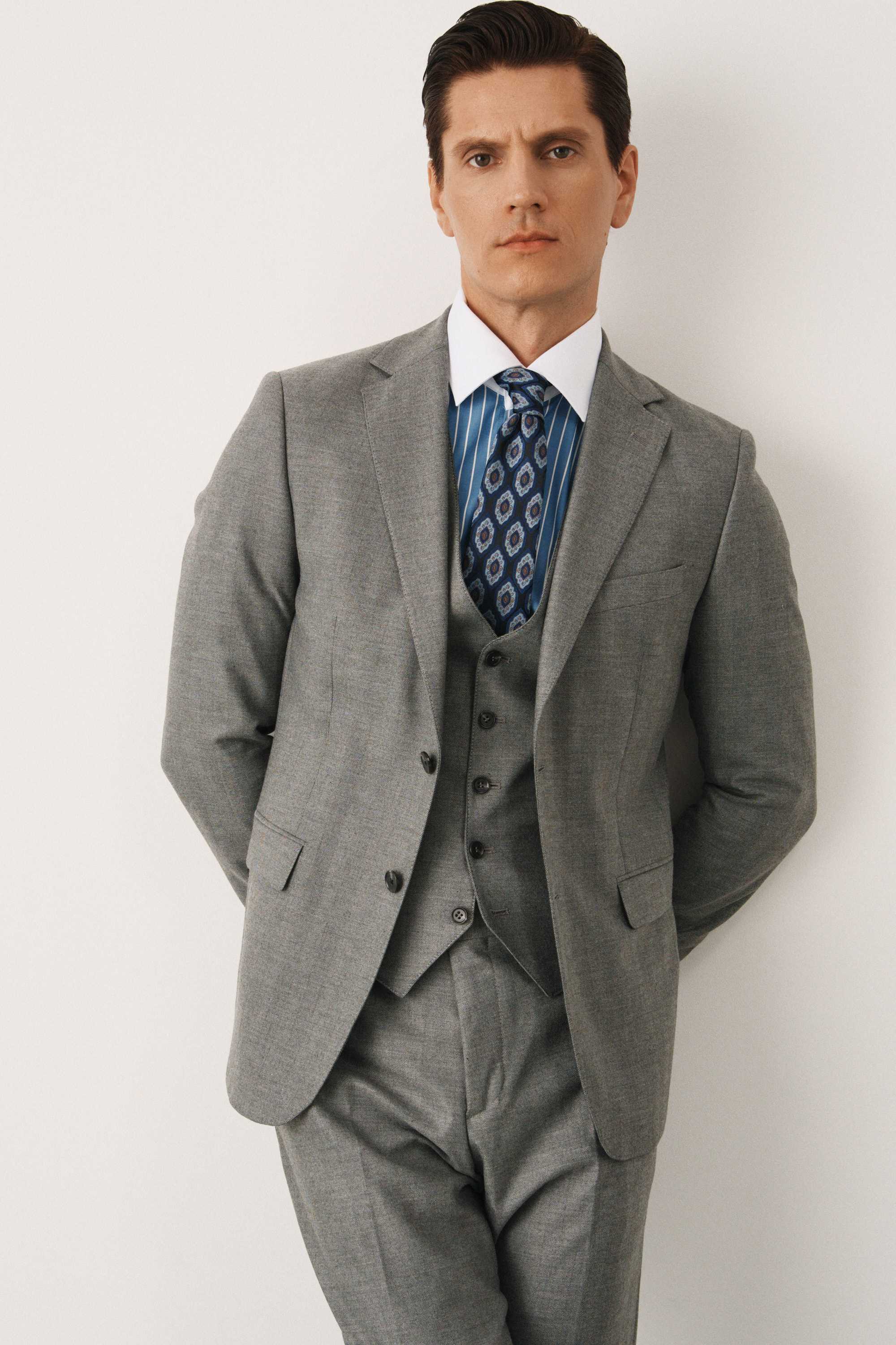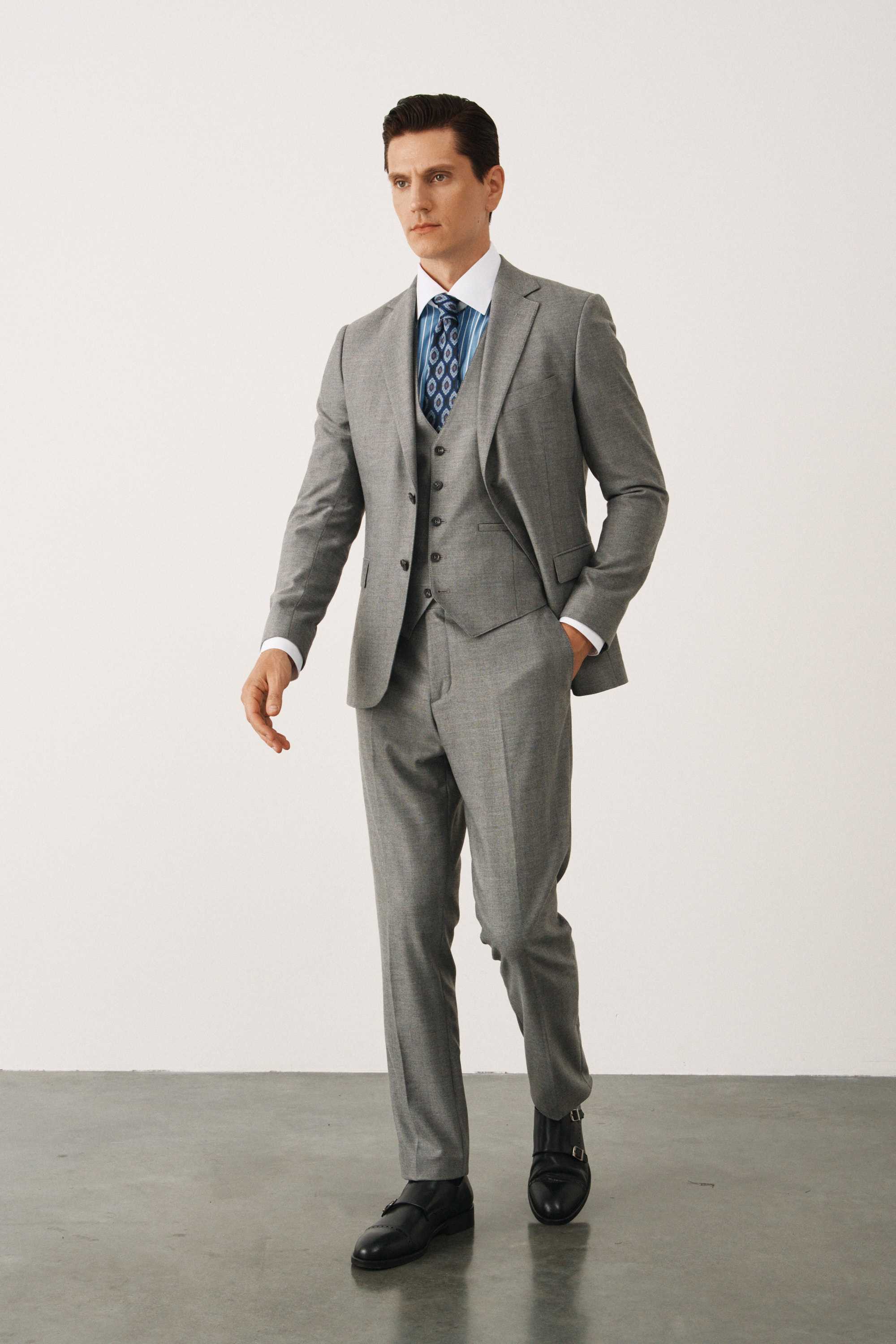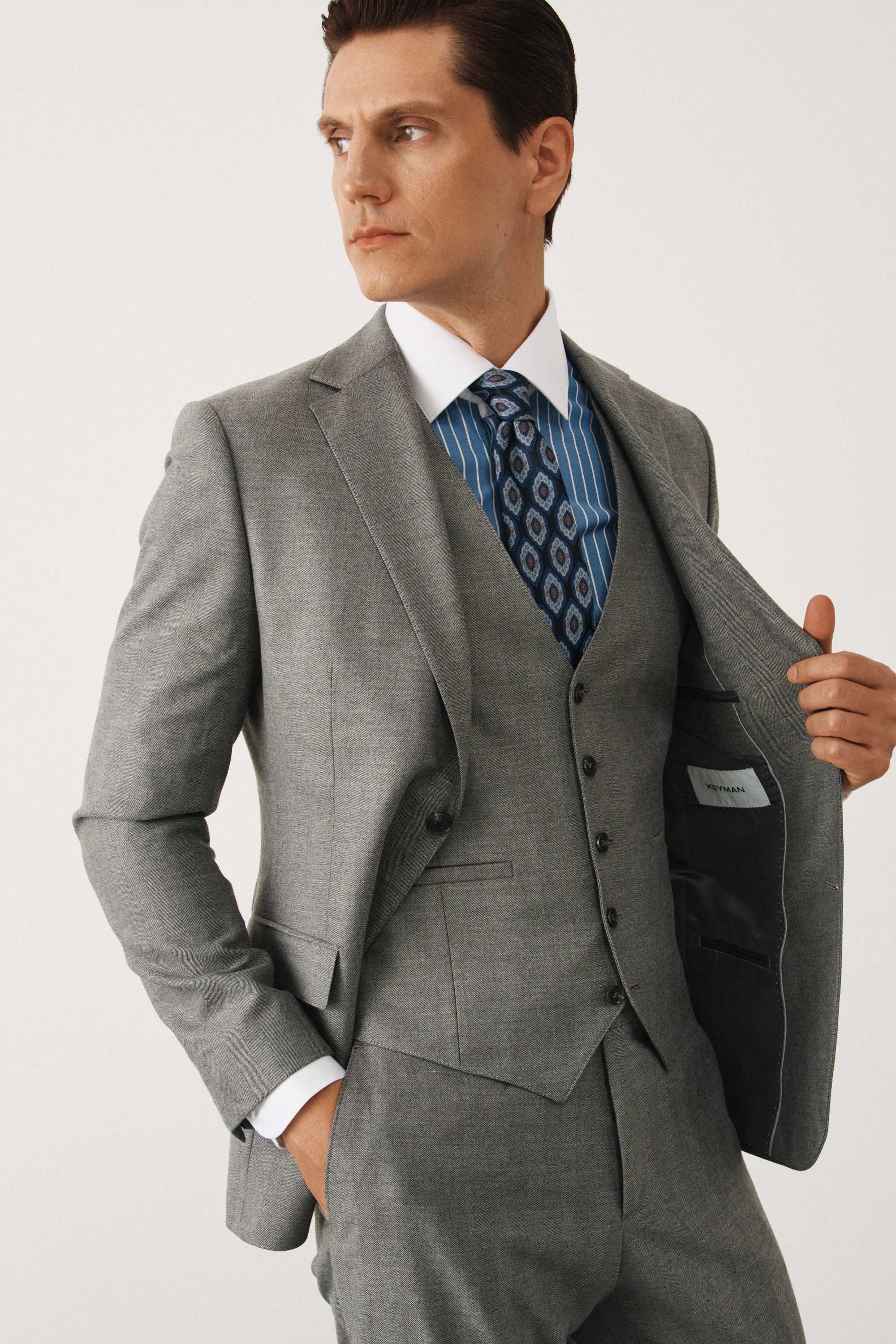 Костюм серый в елочку с жилетом