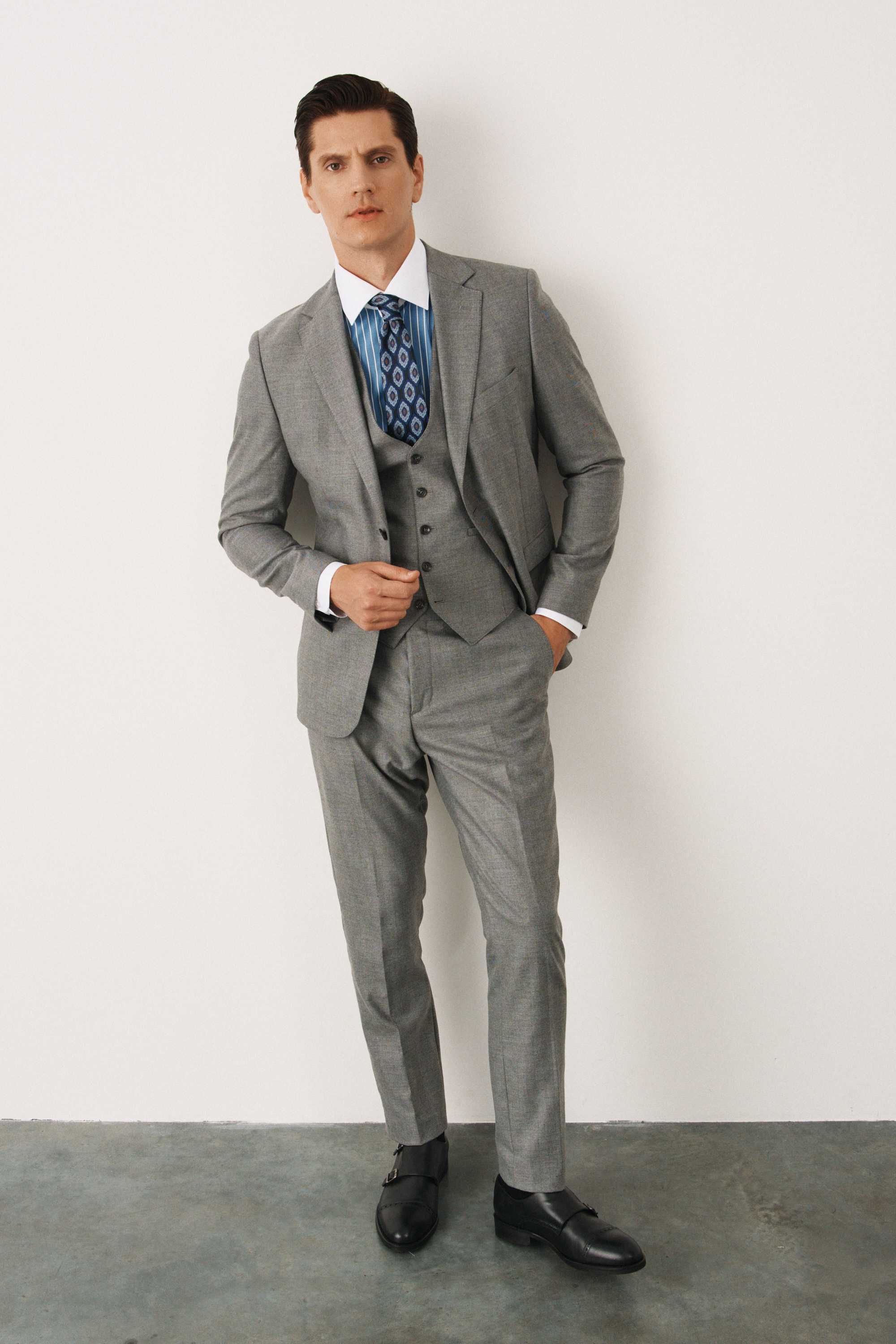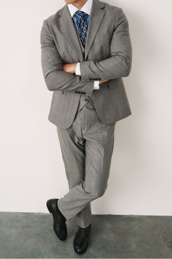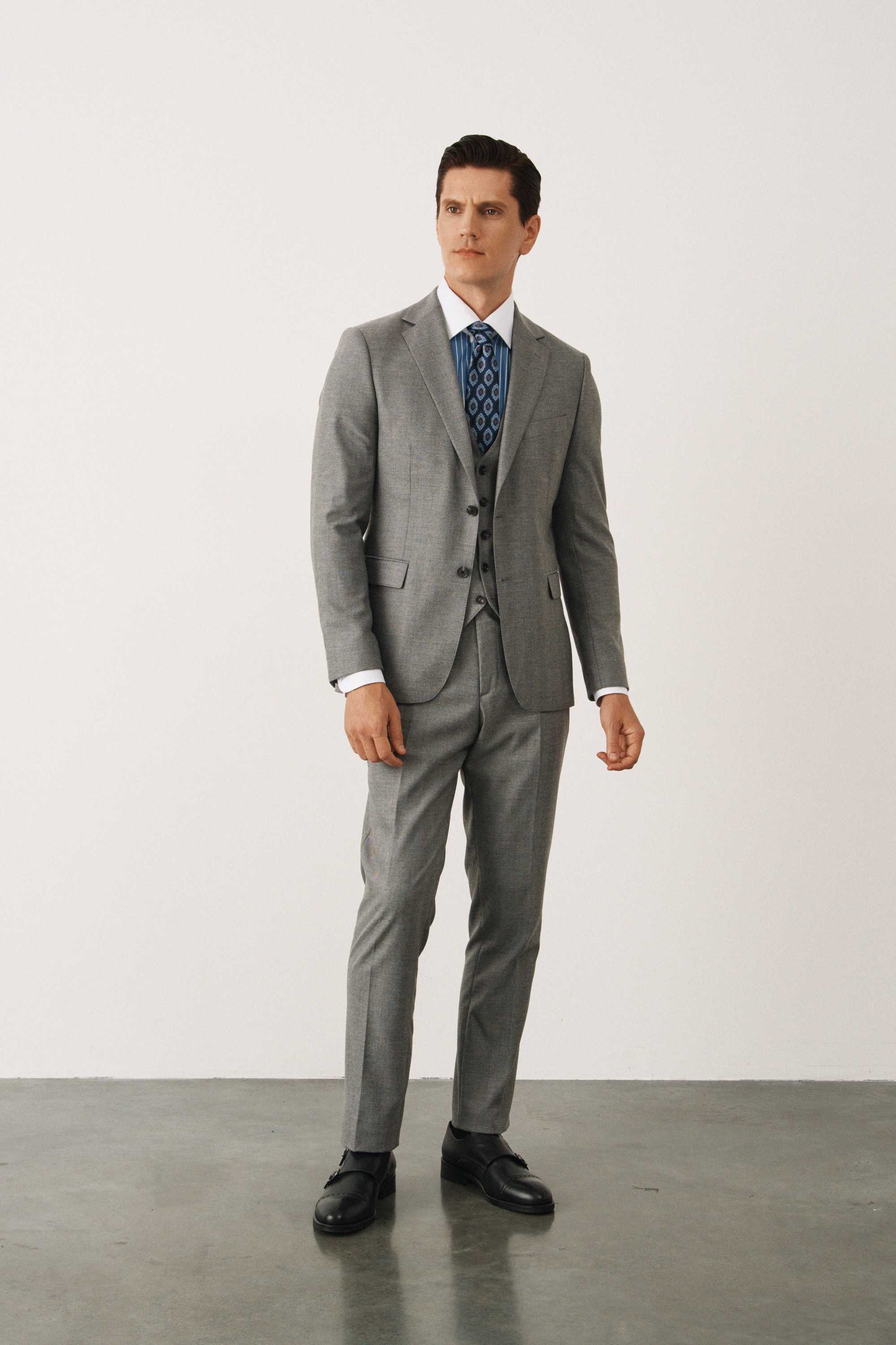 Костюм серый в елочку с жилетом