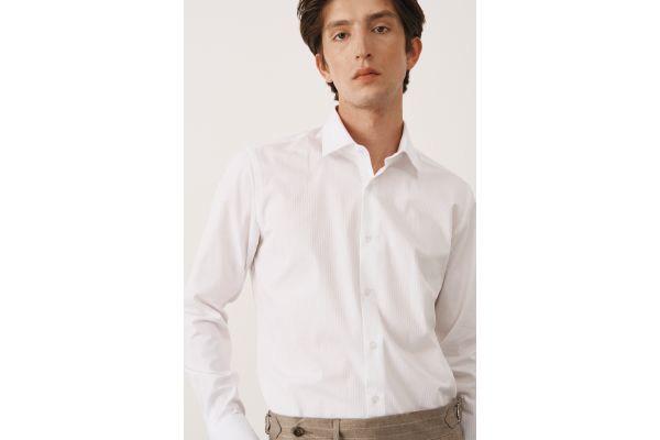 Сдержанный и выразительный серый костюм в голубую полоску. Двубортный пиджак с накладными карманами отсылает к британскому и итальянскому стилю - когда в классике важна не только форма, но и функция. Итальянские лацканы раскрывают линию плеч, добавляя лёгкости. Защипы на брюках дают свободу движения и помогают точнее посадить изделие по фигуре. Полоска в голубом тоне освежает образ и задаёт тонкий визуальный ритм. Такой костюм не требует особого повода - он работает за счёт баланса деталей, посадки и ткани.