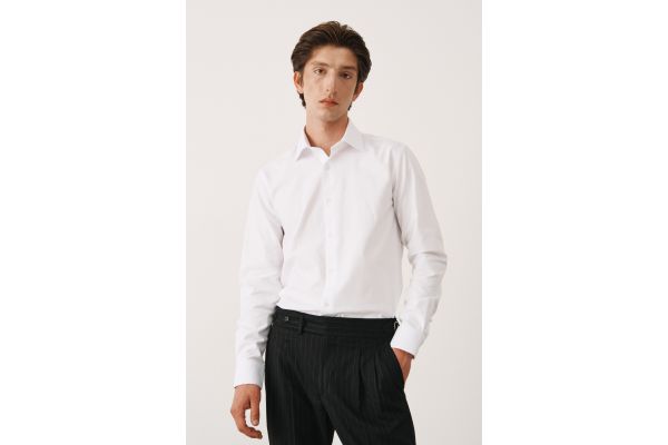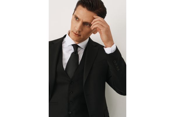 Сдержанный и выразительный серый костюм в тройную полоску. Двубортный пиджак с накладными карманами отсылает к британскому и итальянскому стилю - когда в классике важна не только форма, но и функция. Итальянские лацканы раскрывают линию плеч, добавляя лёгкости. Защипы на брюках дают свободу движения и помогают точнее посадить изделие по фигуре. Полоска почти незаметна, но именно она задаёт ритм. Такой костюм не требует особого повода - он работает за счёт баланса деталей, посадки и ткани.