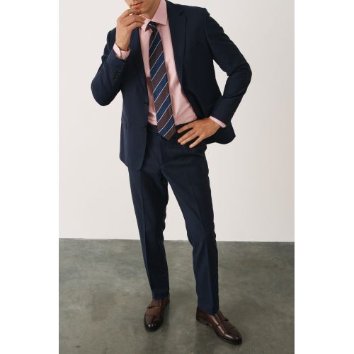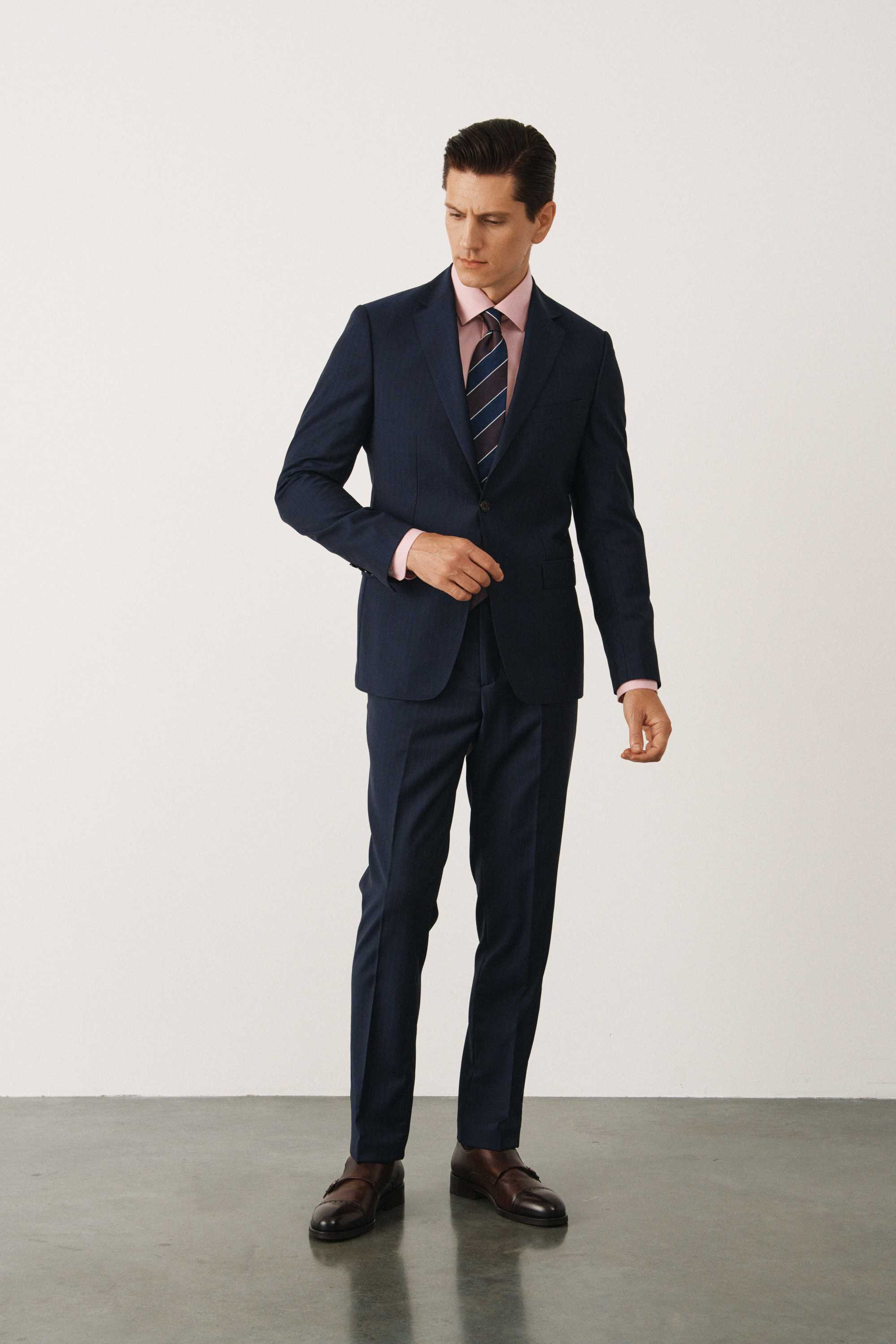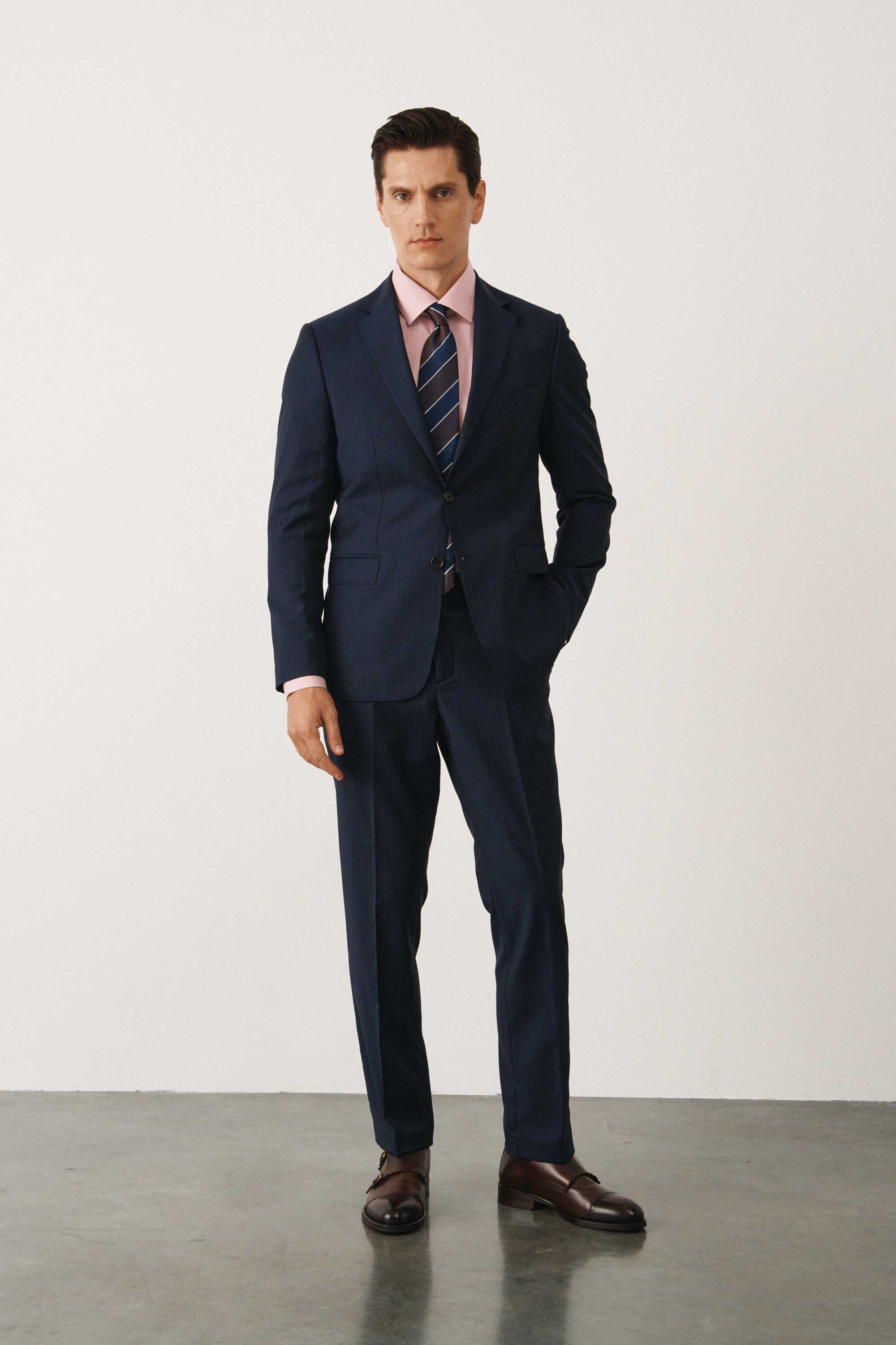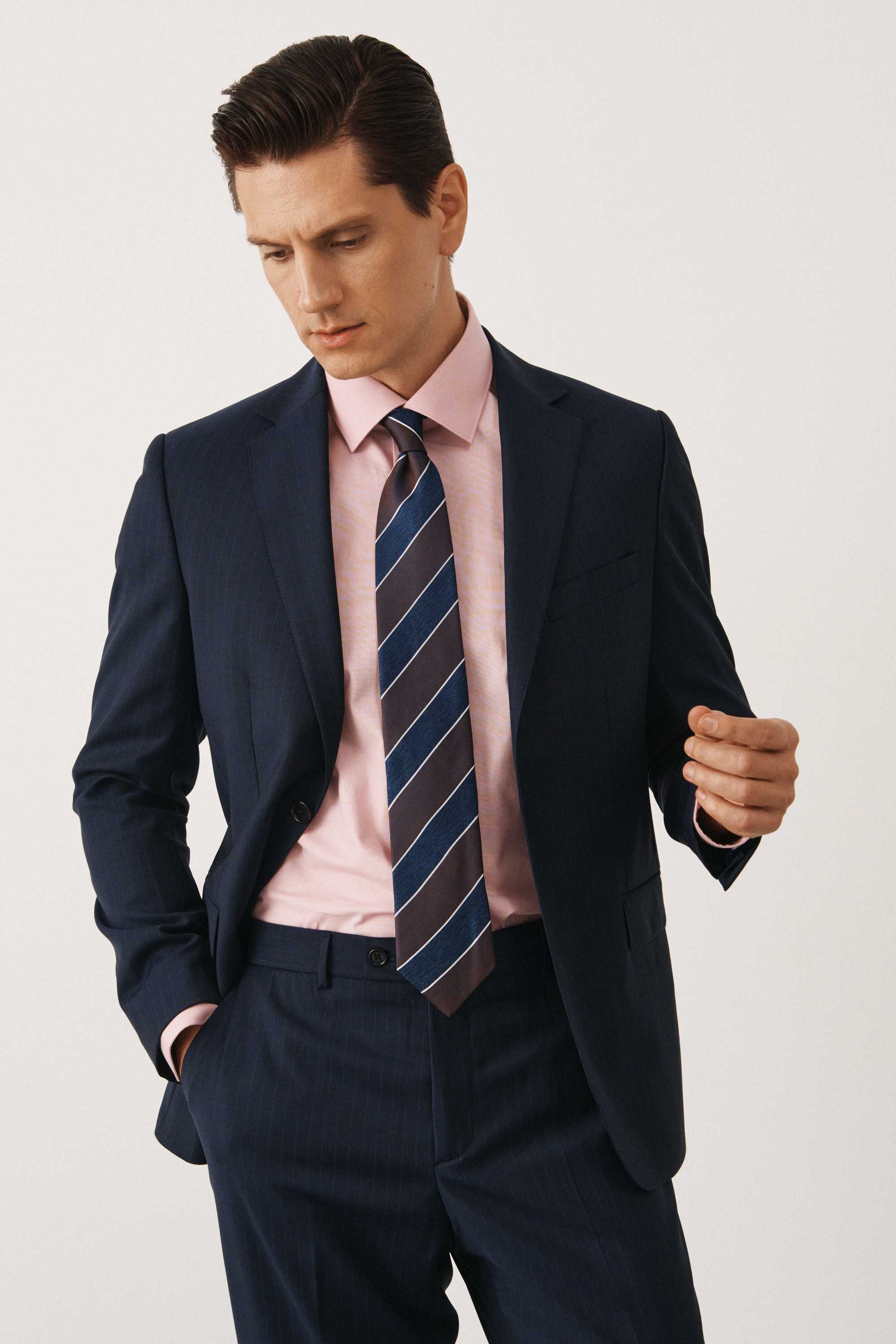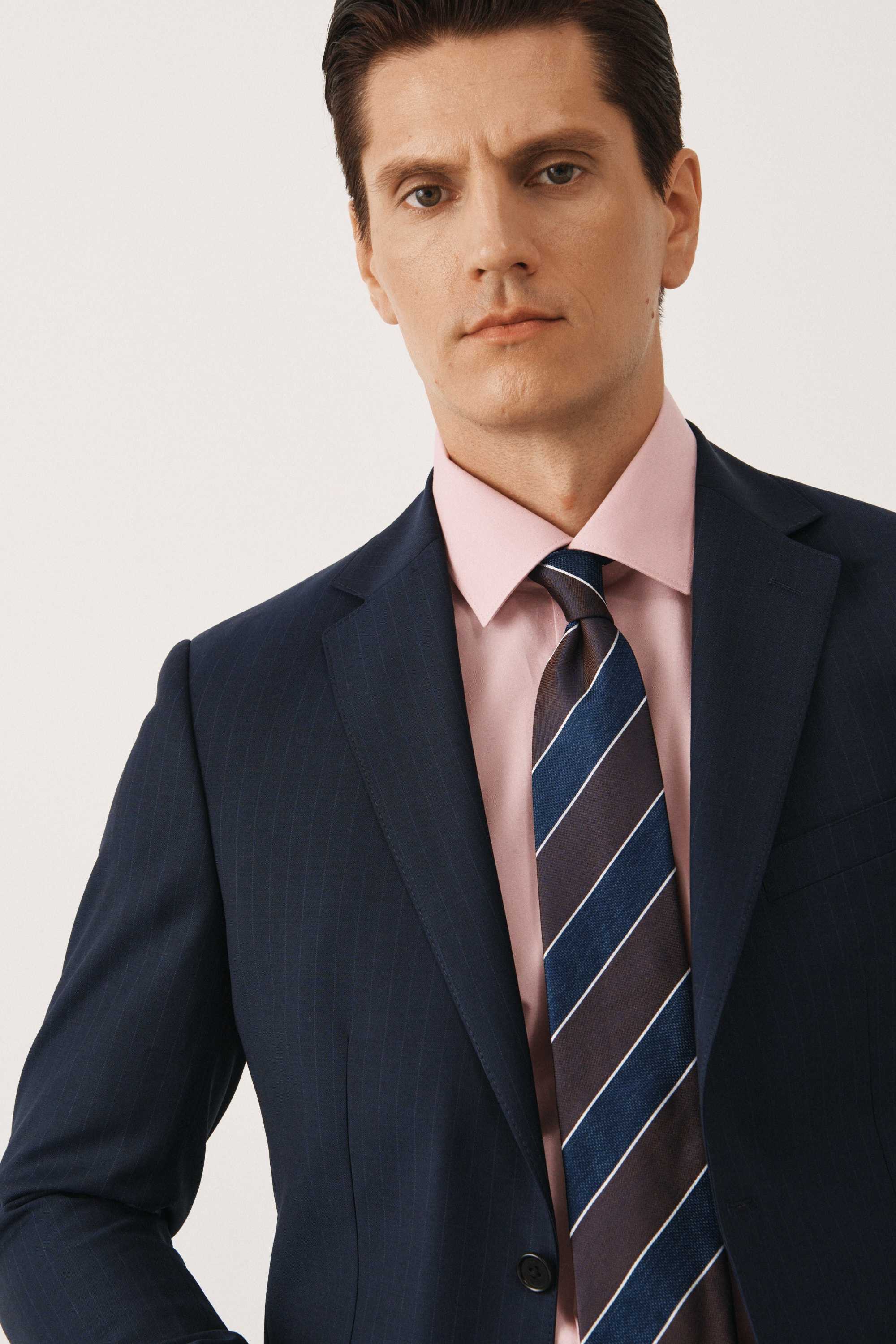 Костюм темно-синий в тонкую полоску из деликатной шерсти