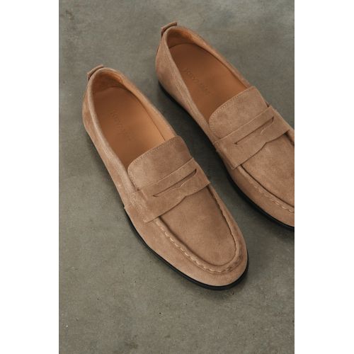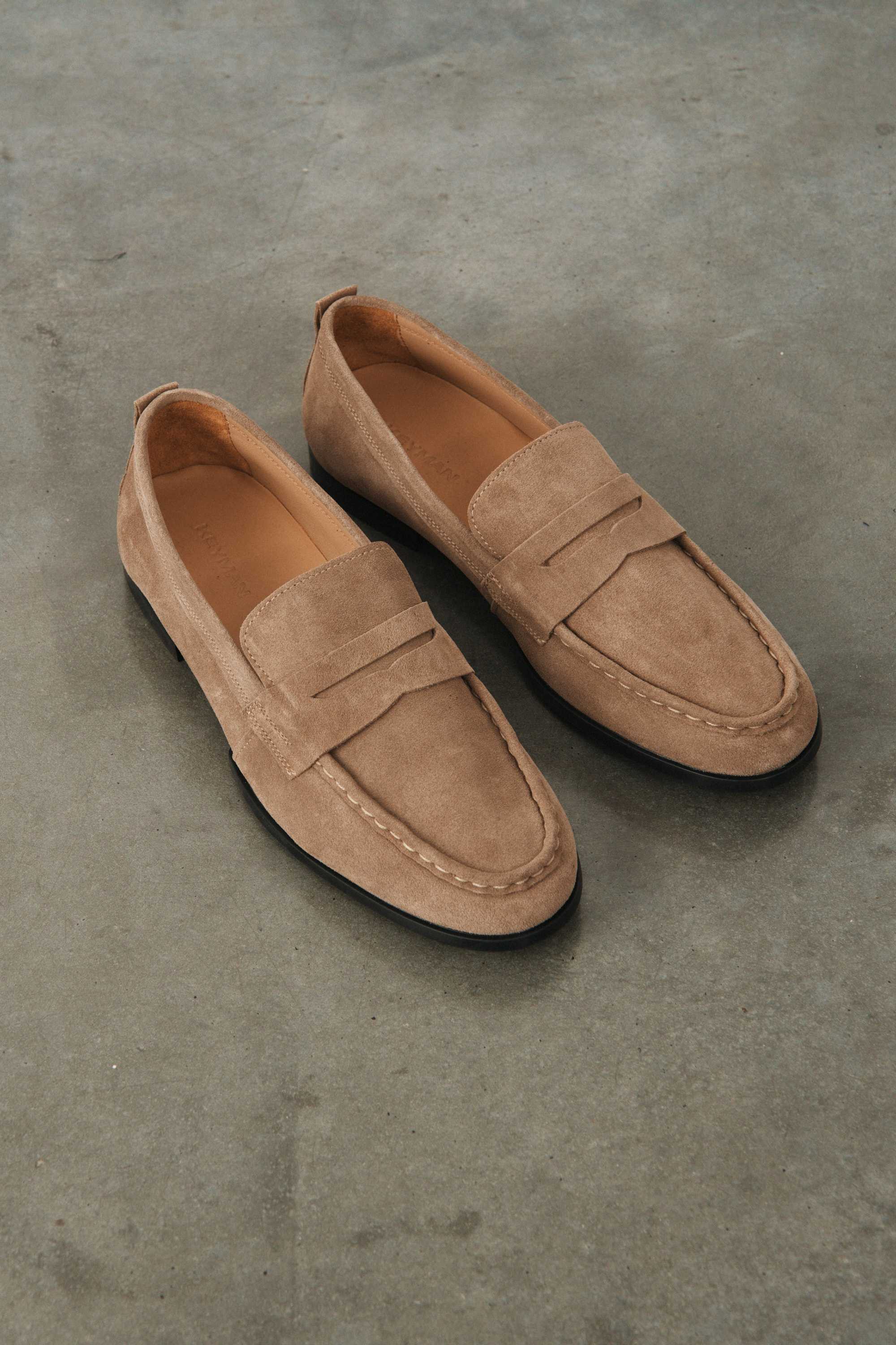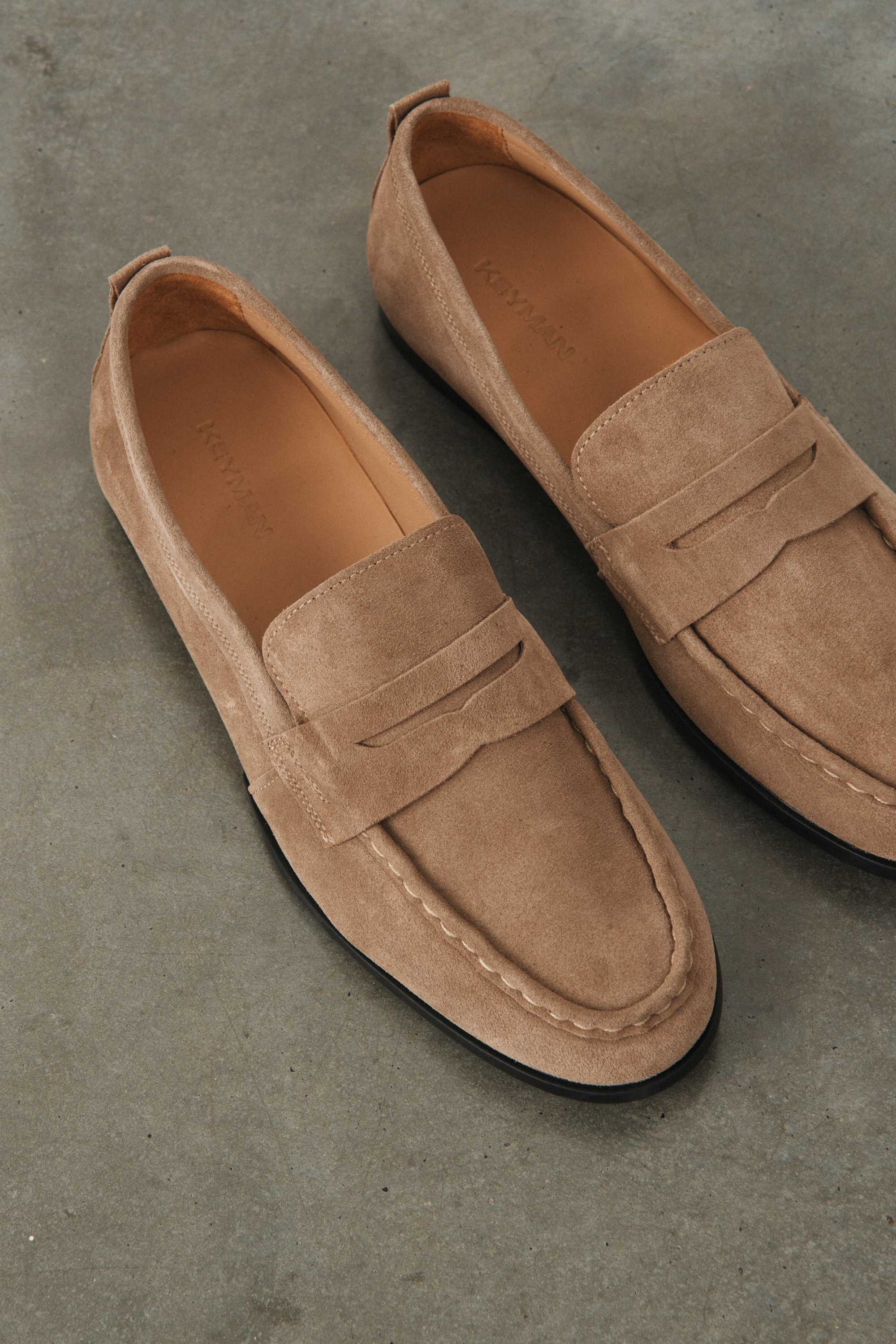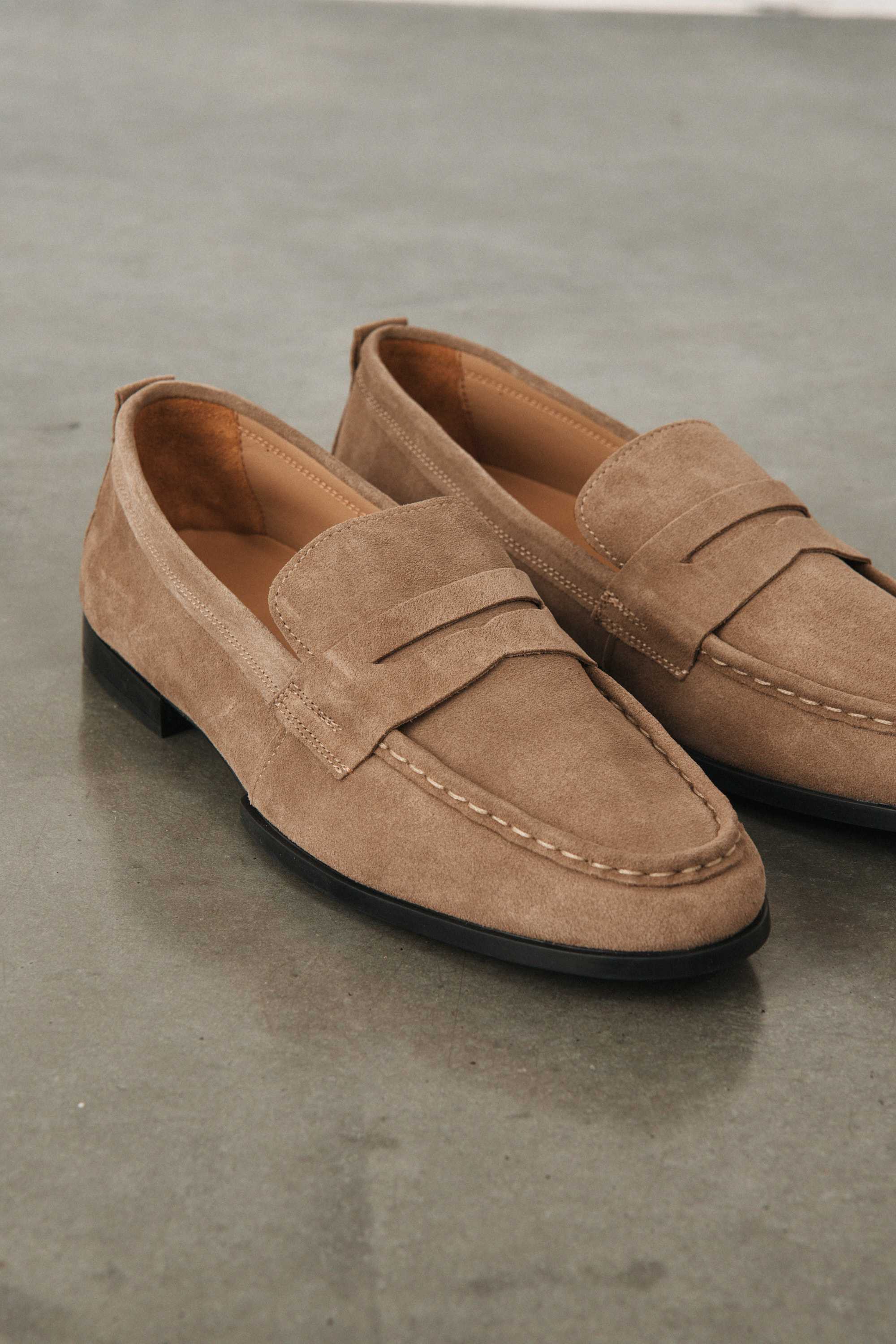 Пенни-лоферы замшевые темно-бежевые на тонкой подошве