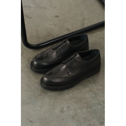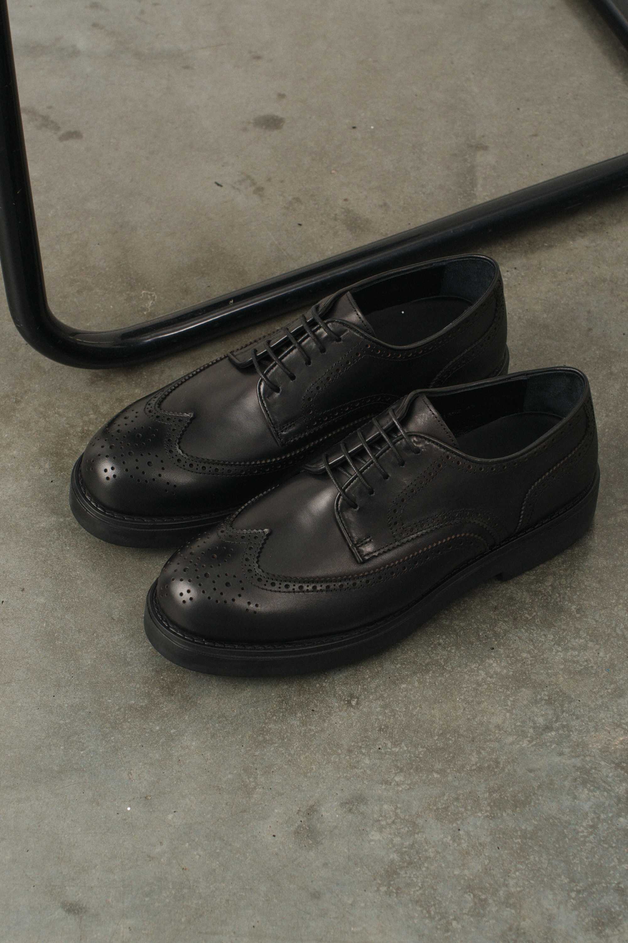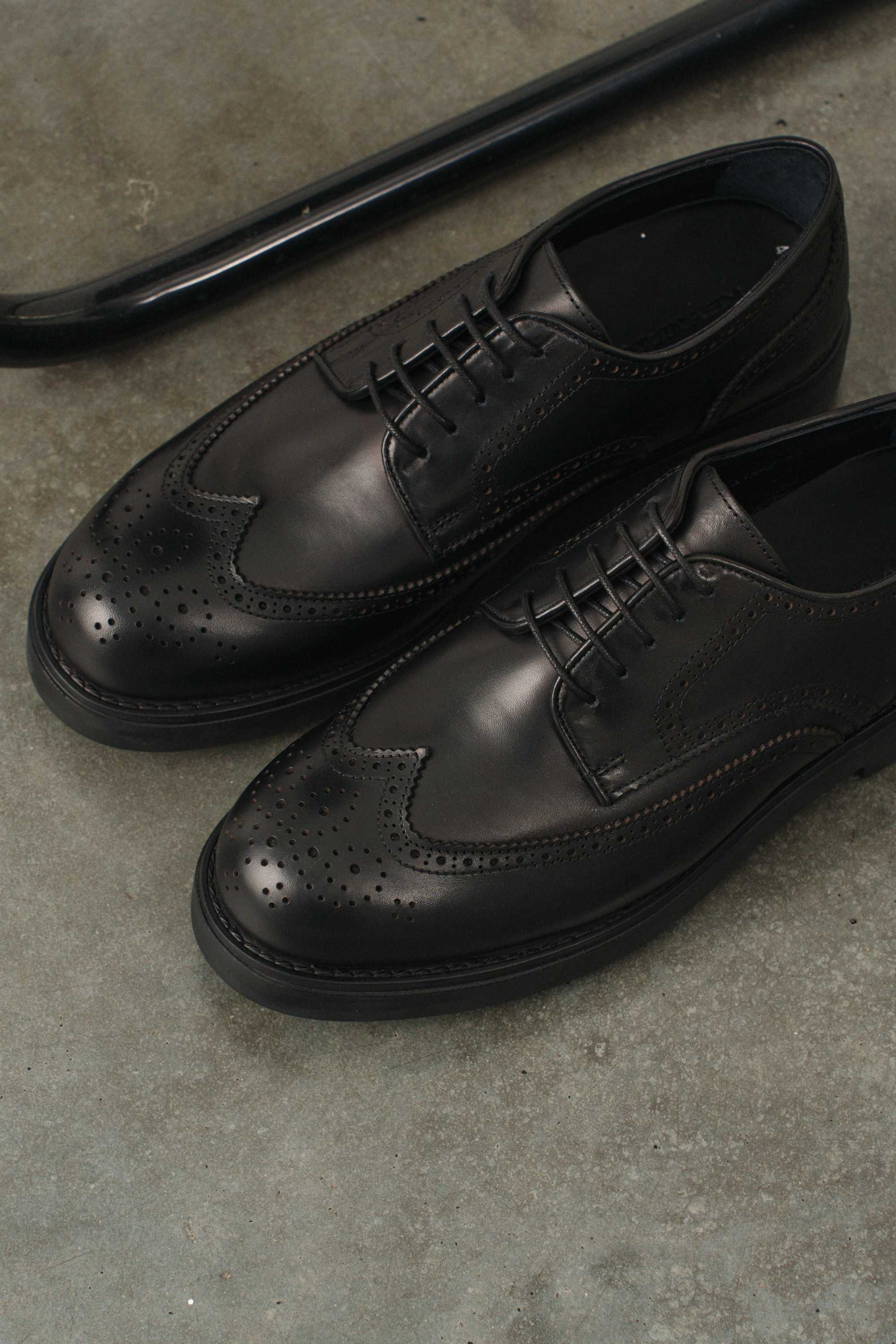 Туфли мужские броги вингтип черные на высокой гладкой подошве