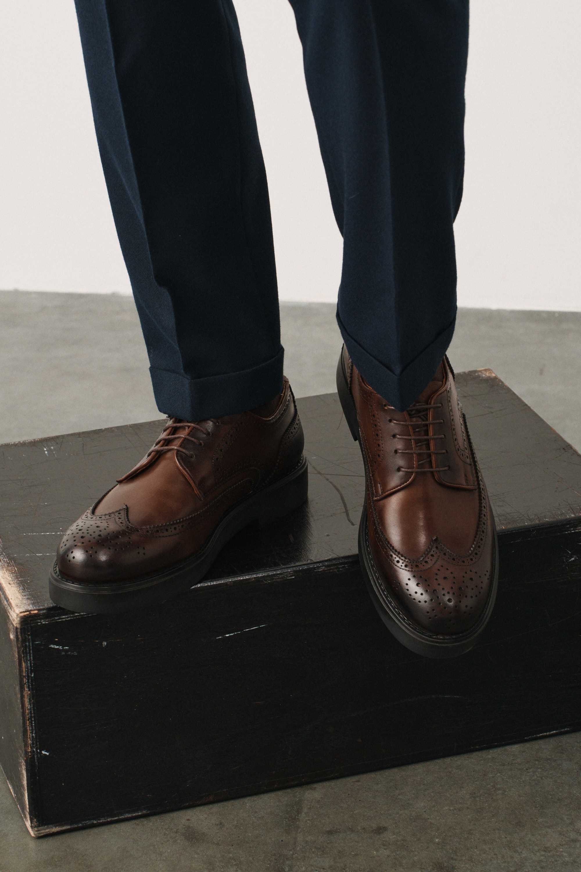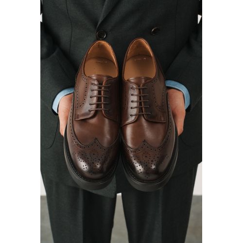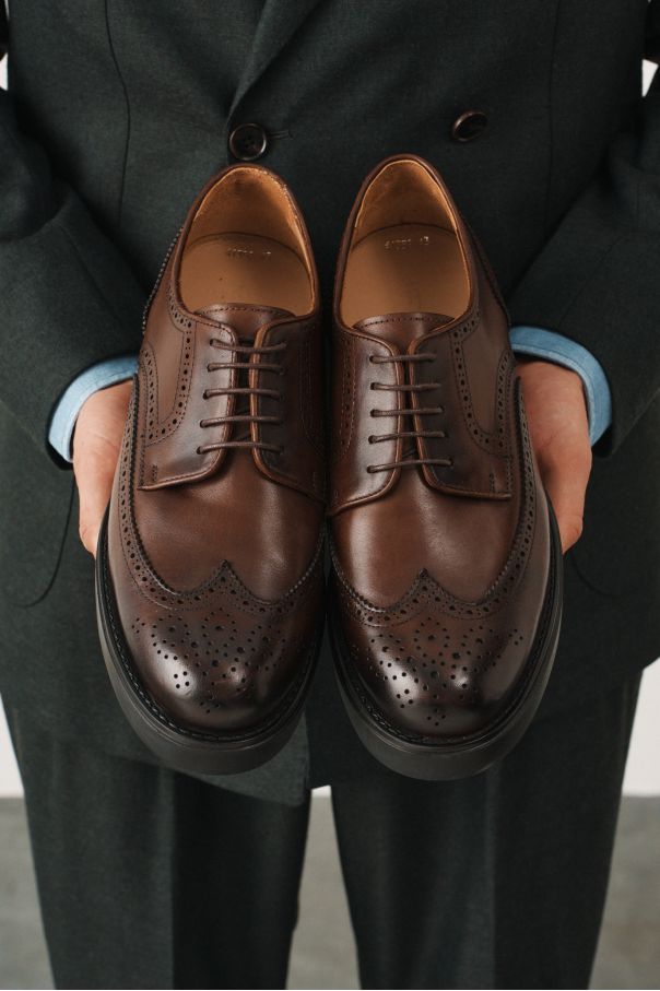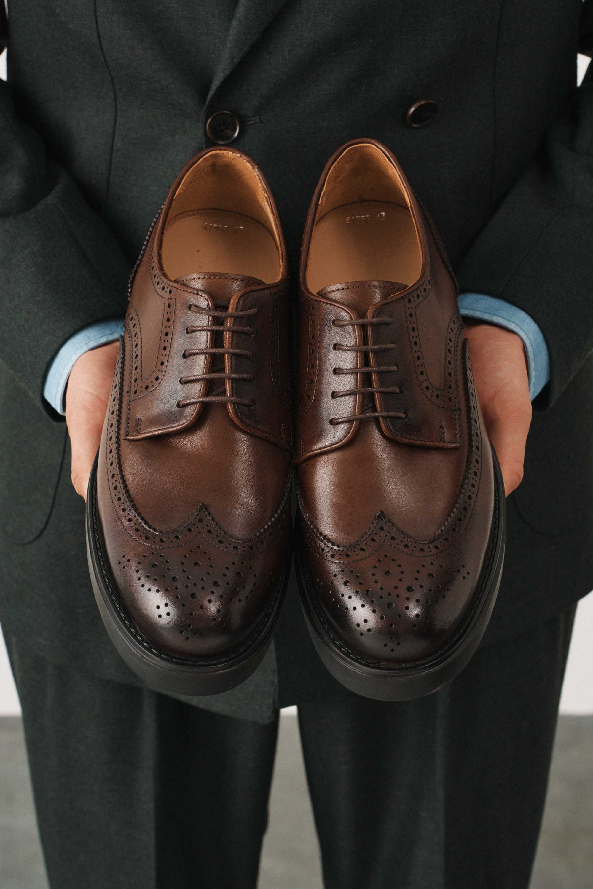 Туфли мужские броги вингтип коричневые на высокой гладкой подошве