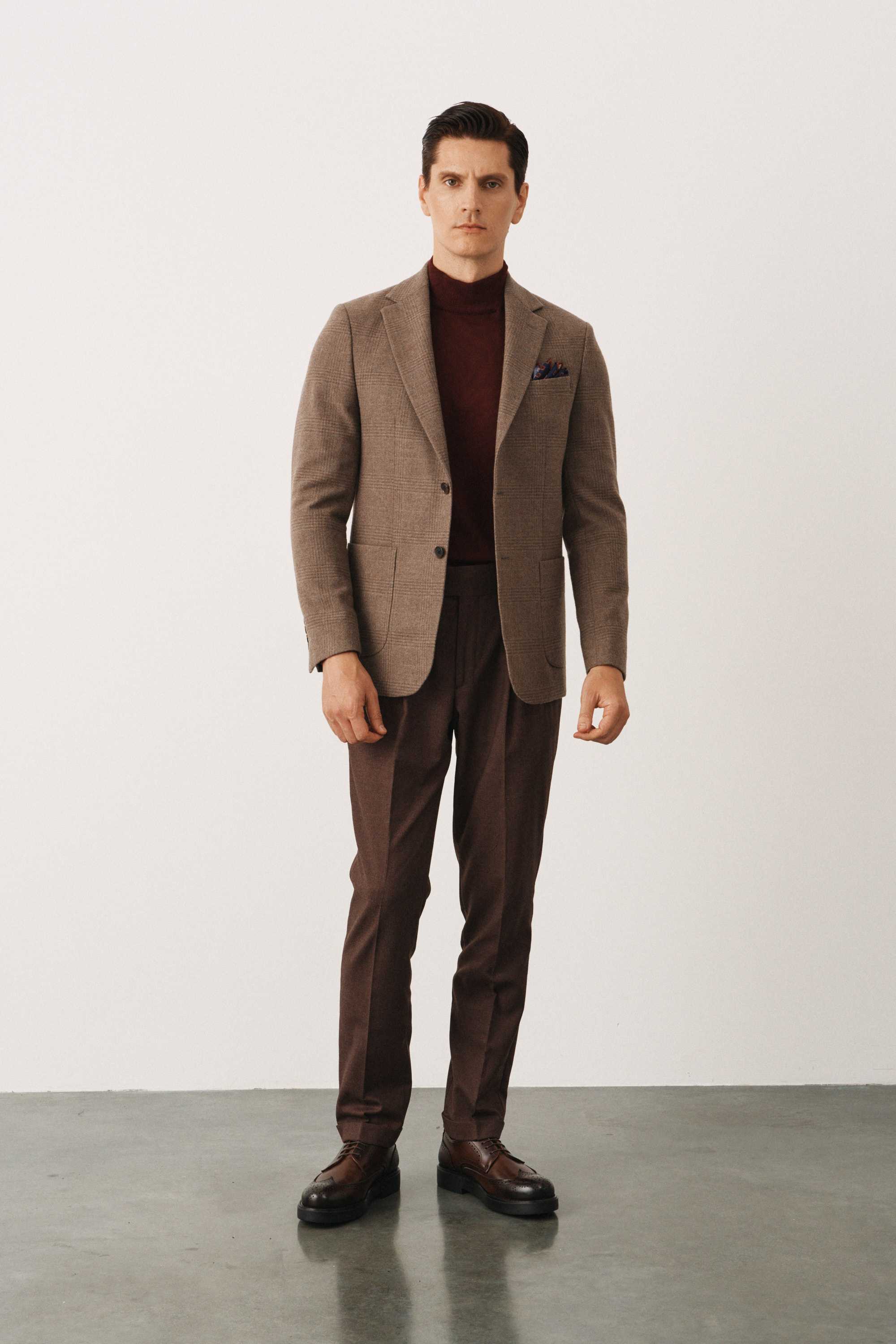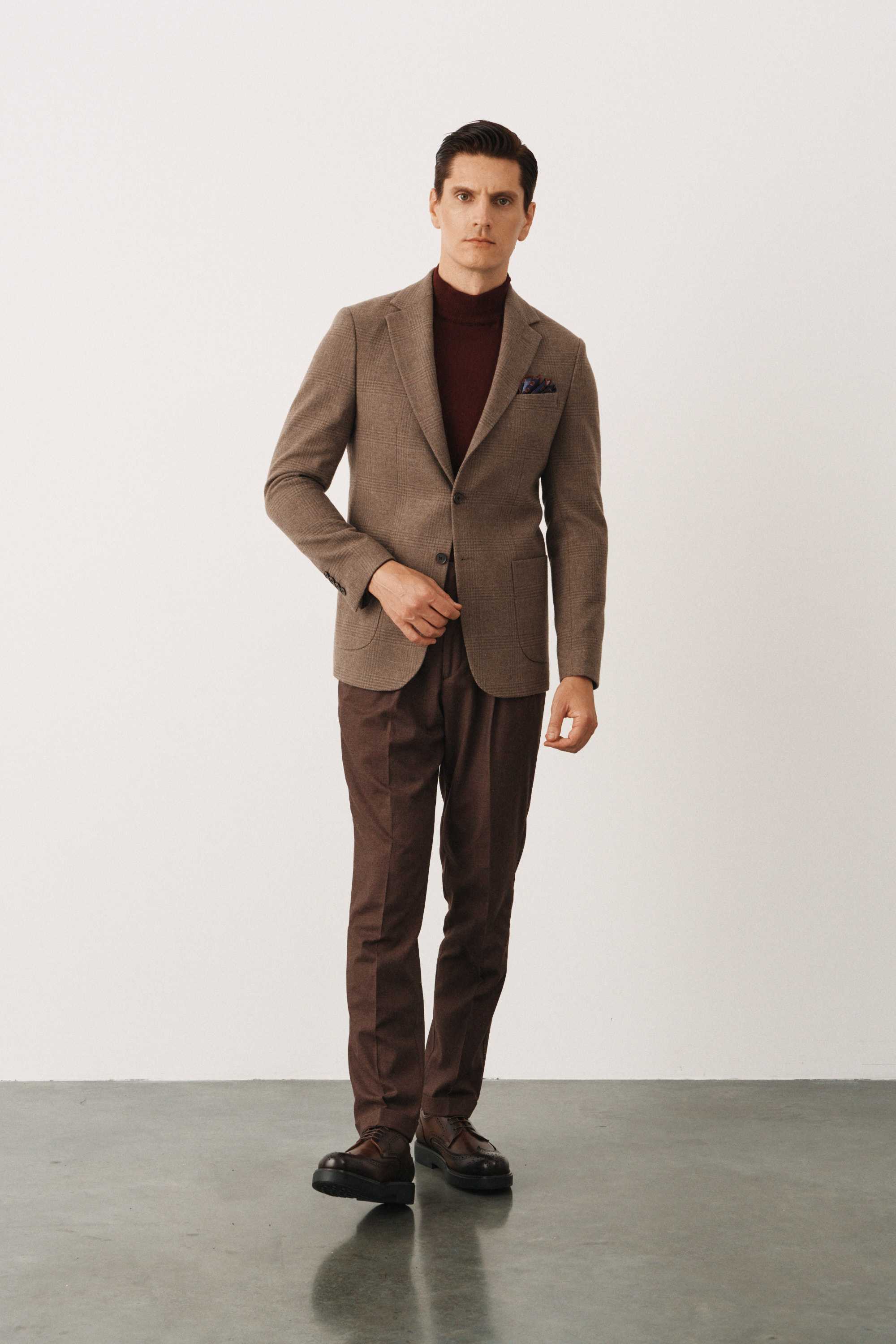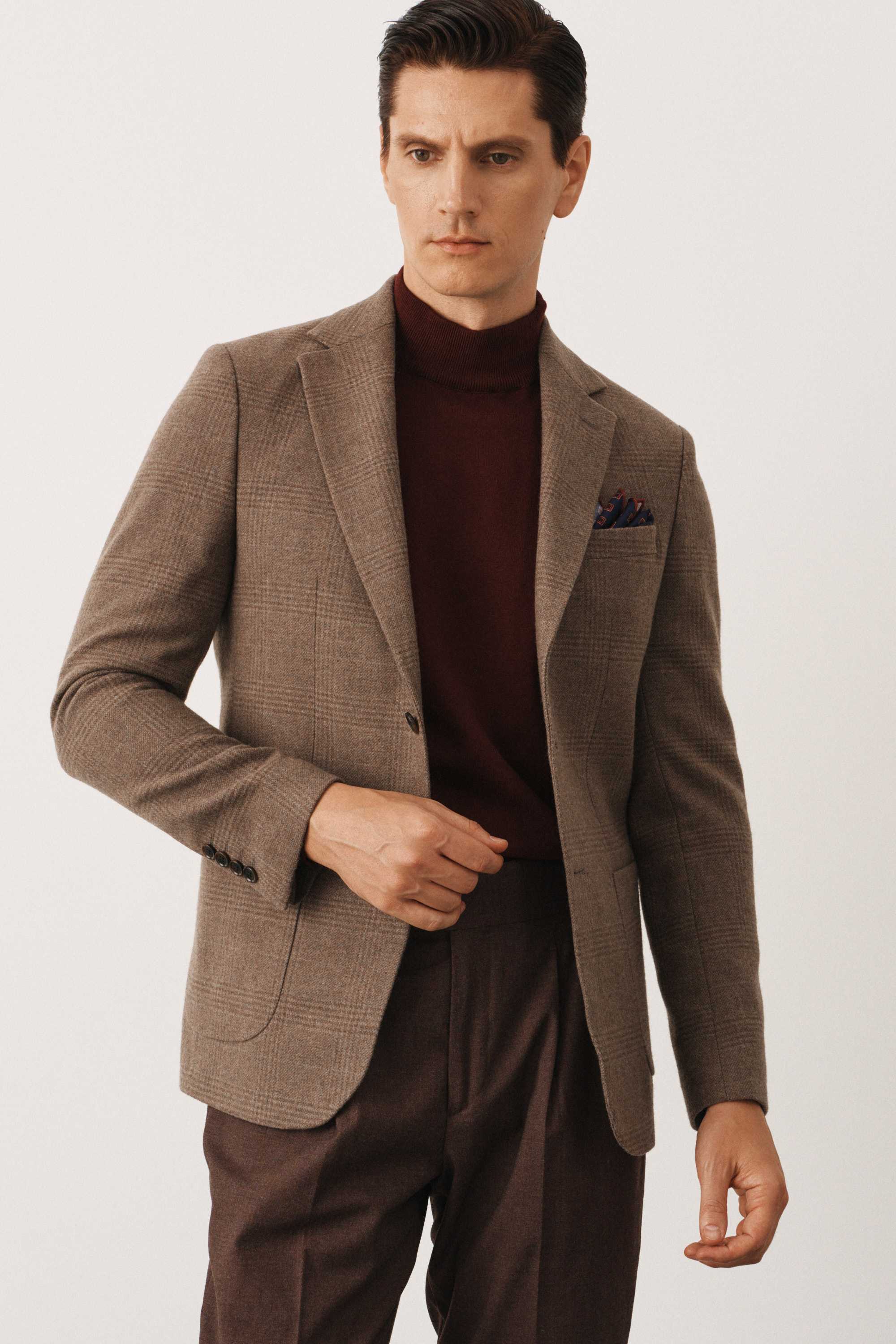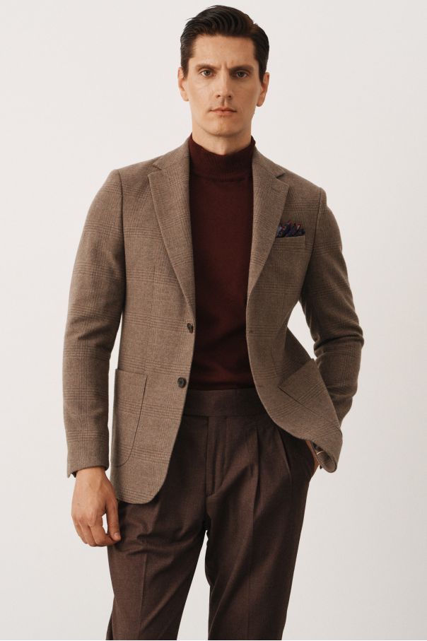 Пиджак бежевый в клетку без подкладки (half-lined)