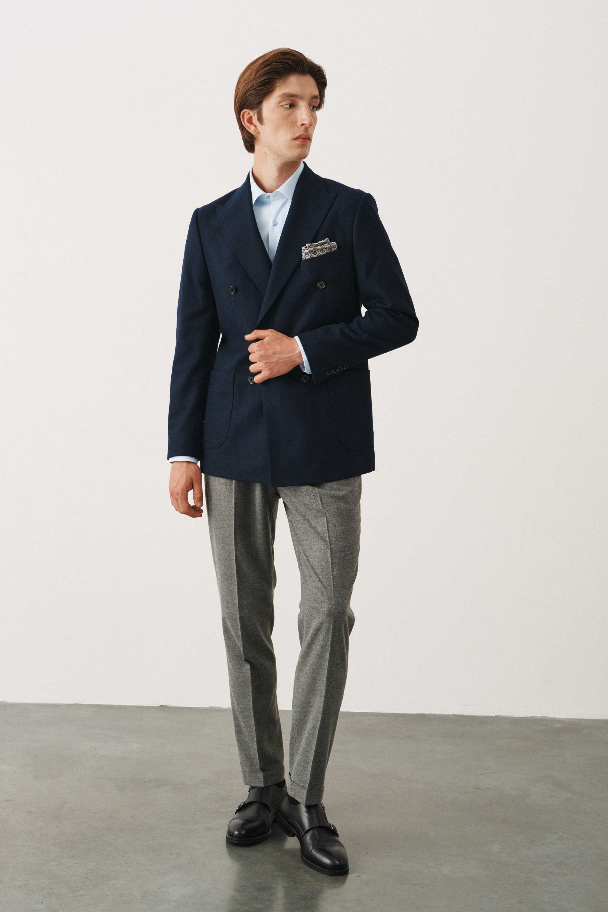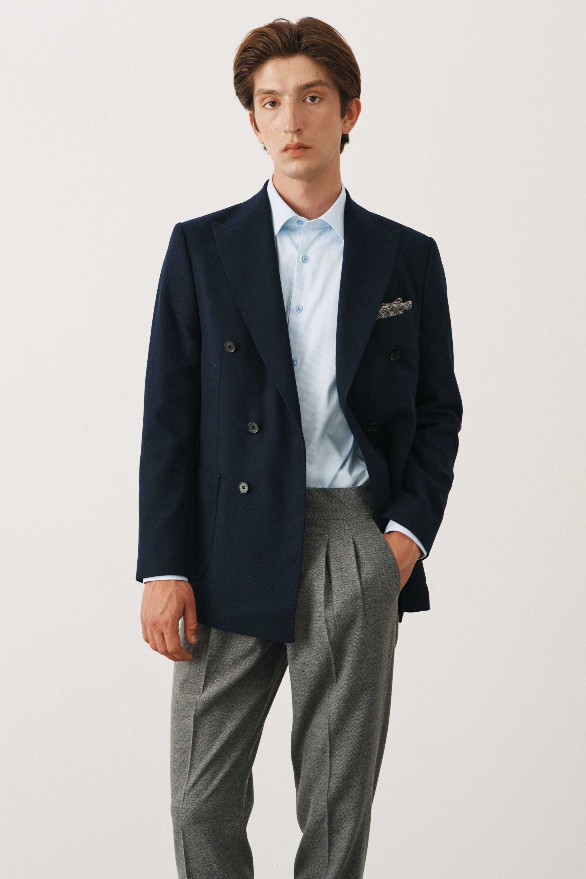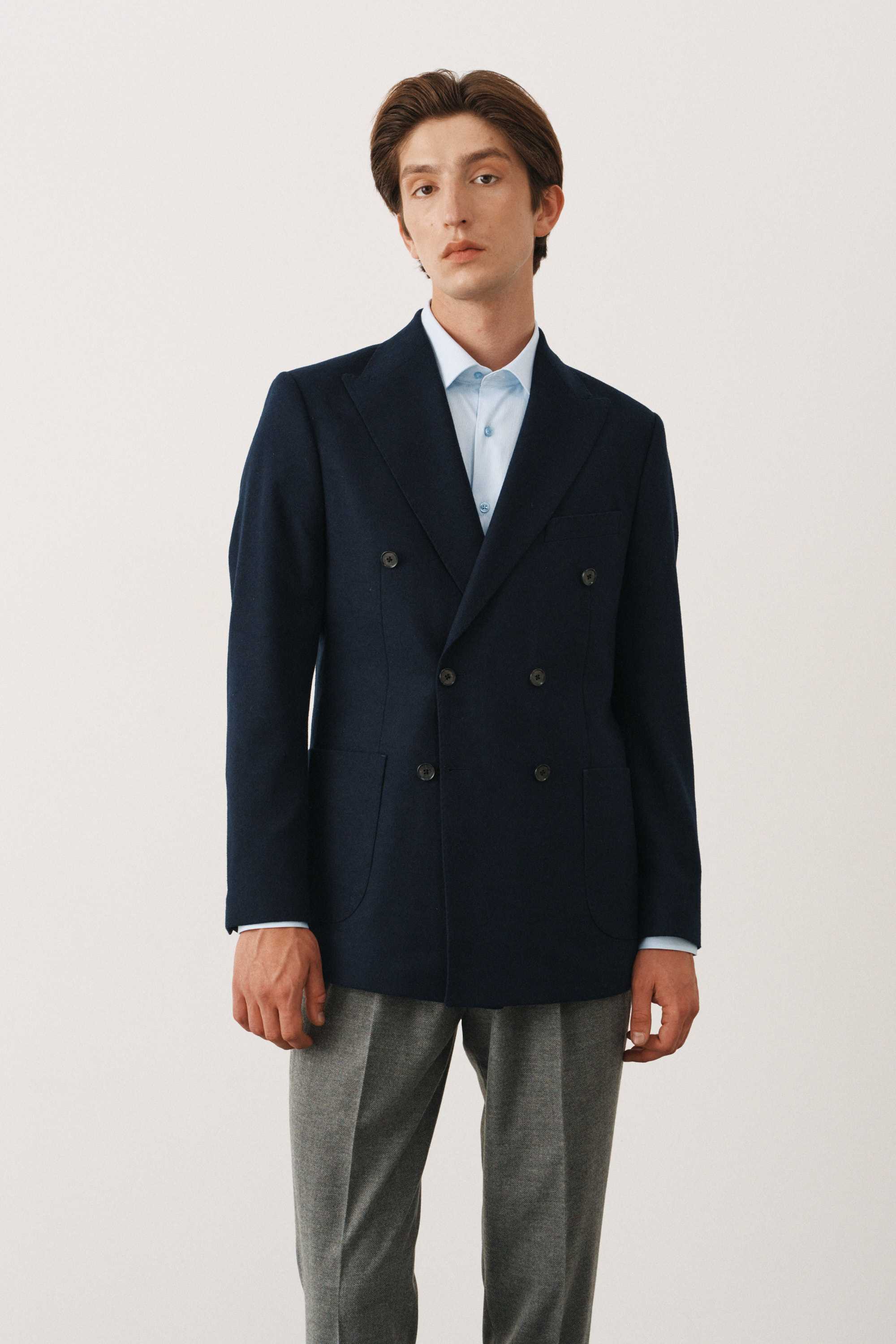 Пиджак двубортный синий