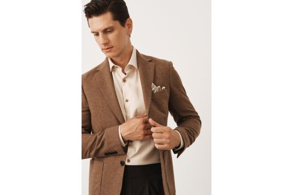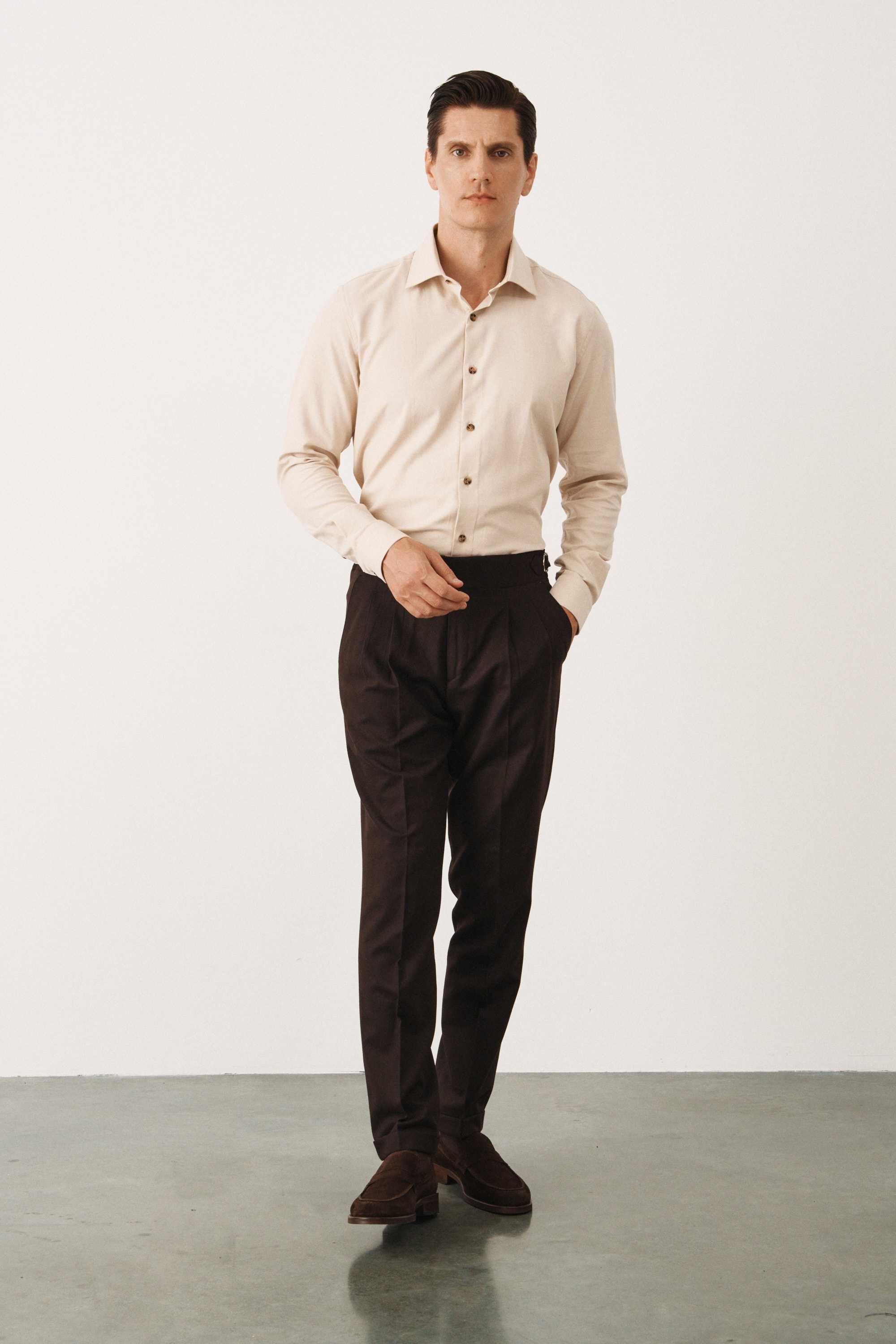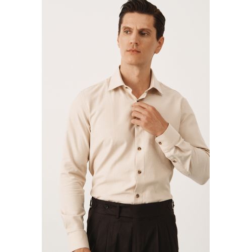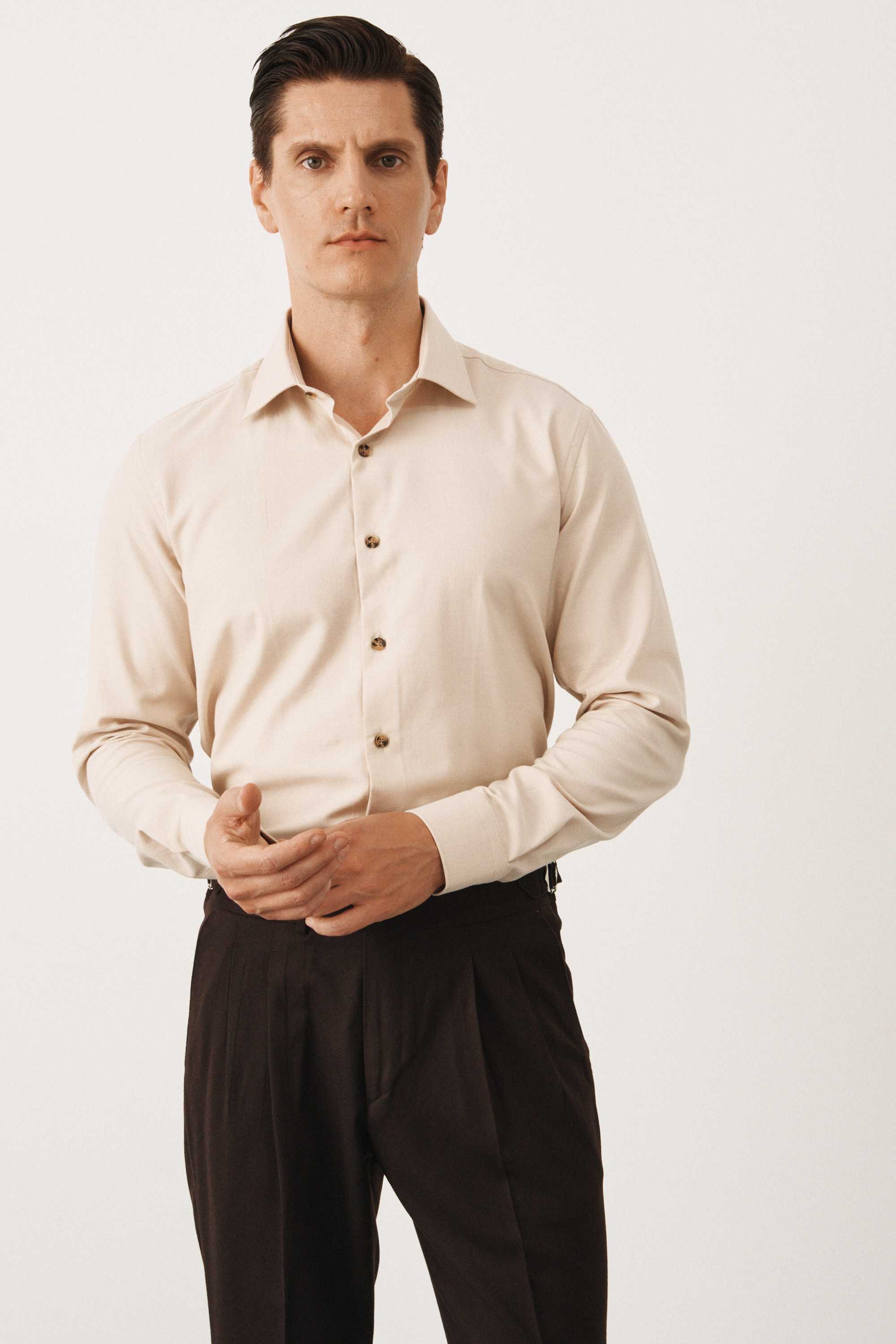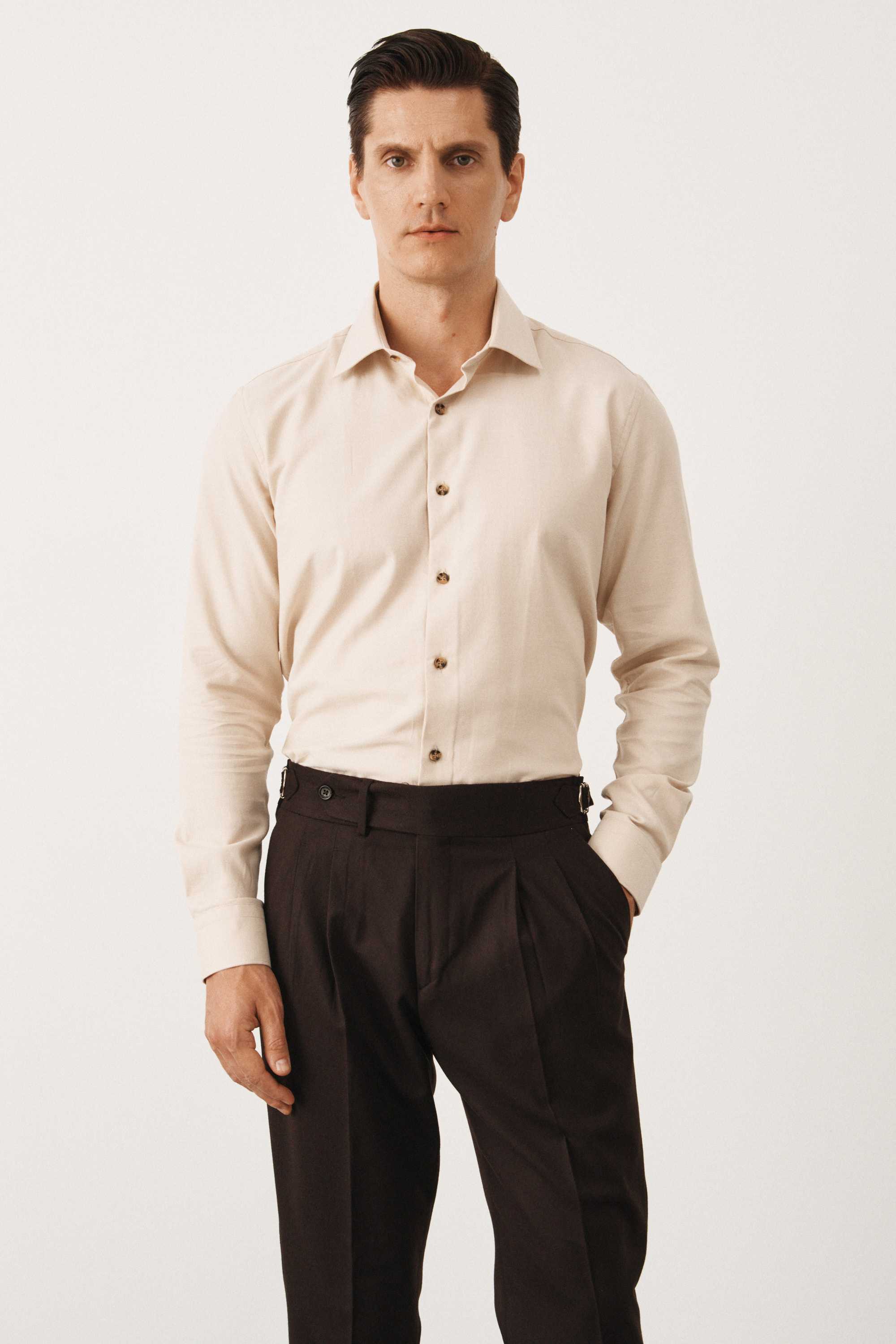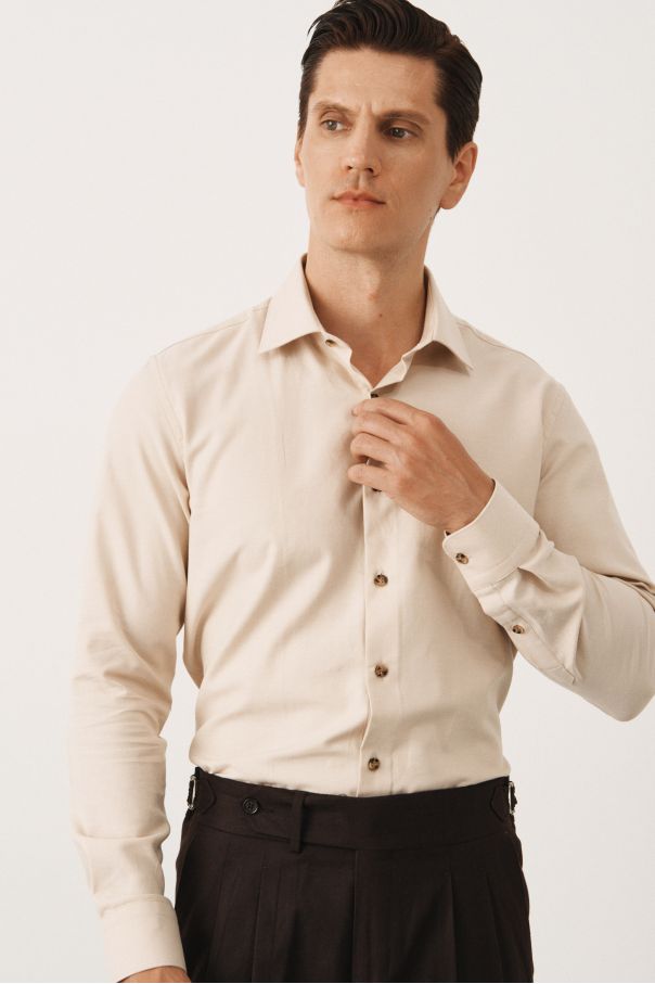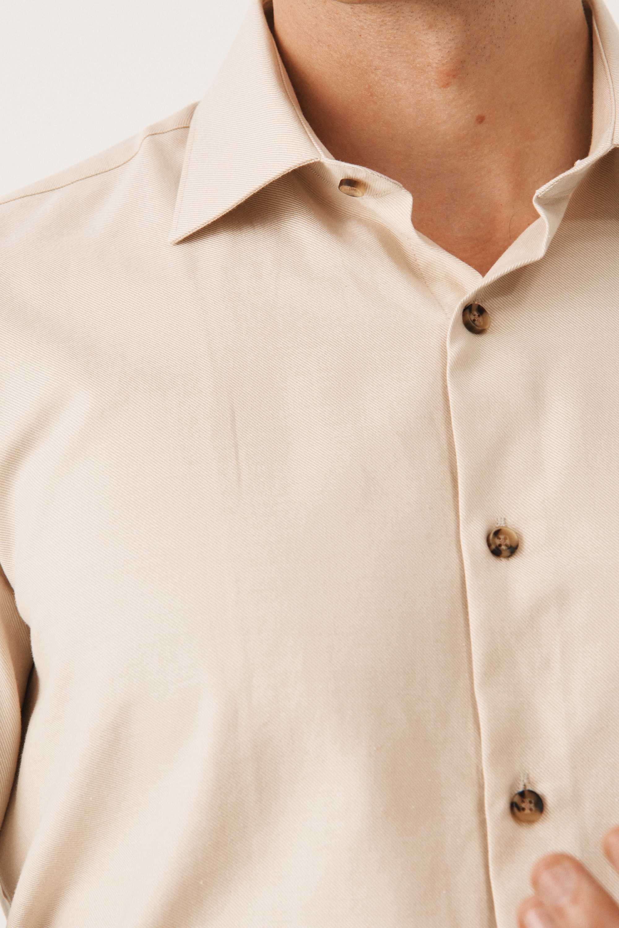 Рубашка бежевая в диагональную фактуру, классика воротник (Regular fit)