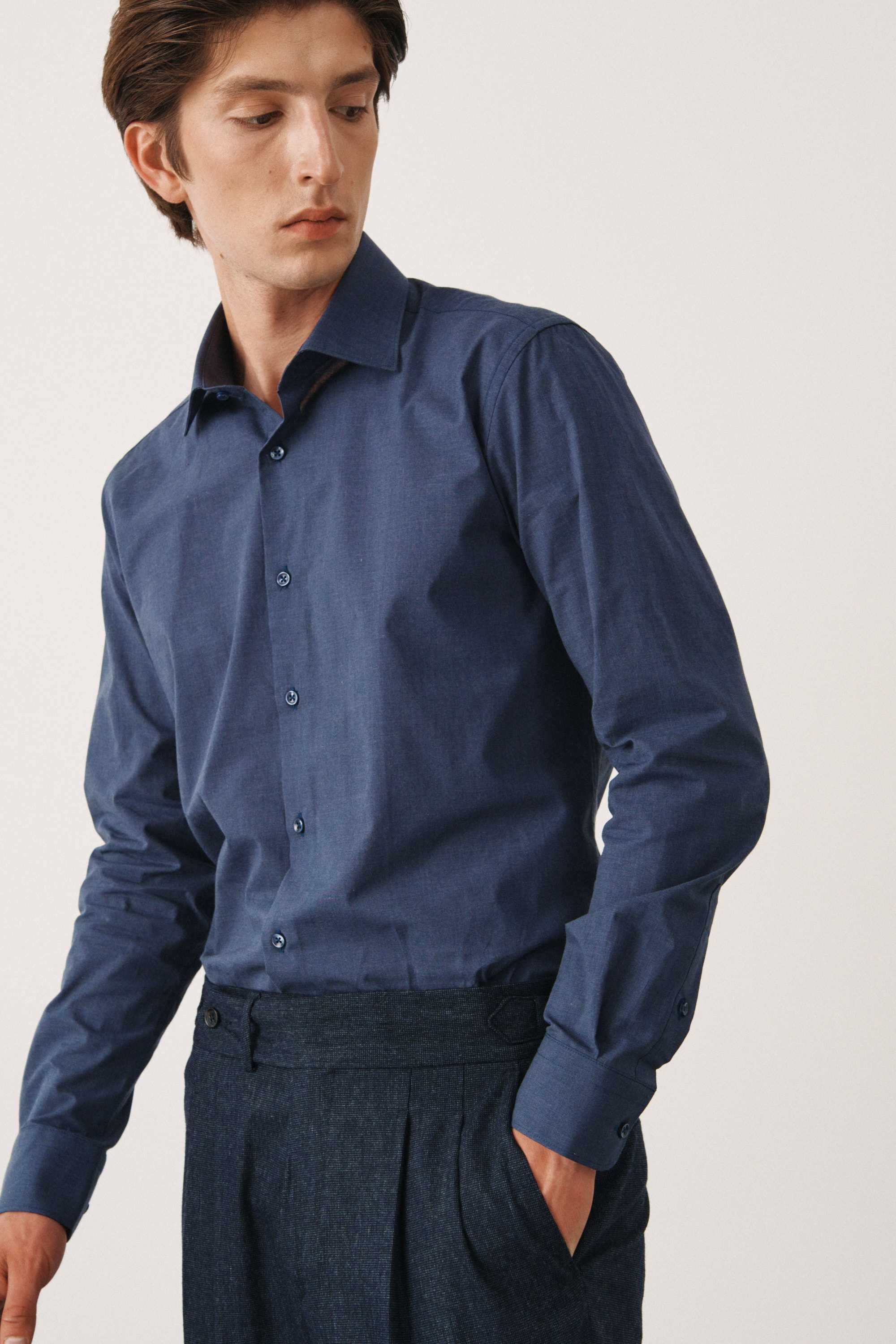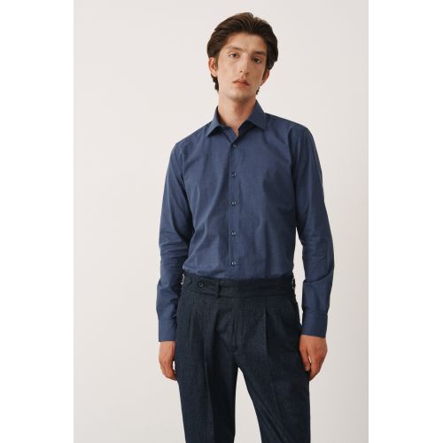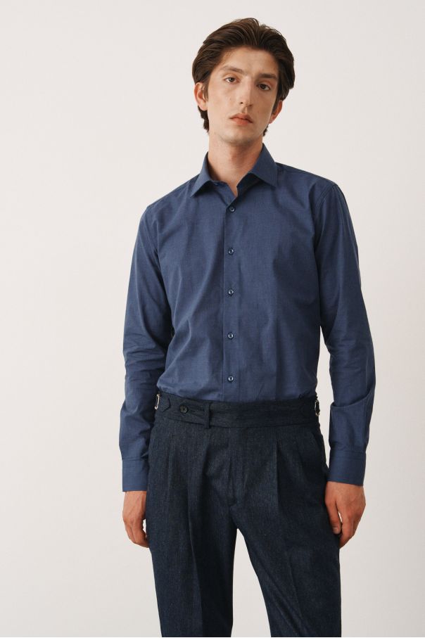 Рубашка темно-синяя меланж, классика воротник (Regular fit)