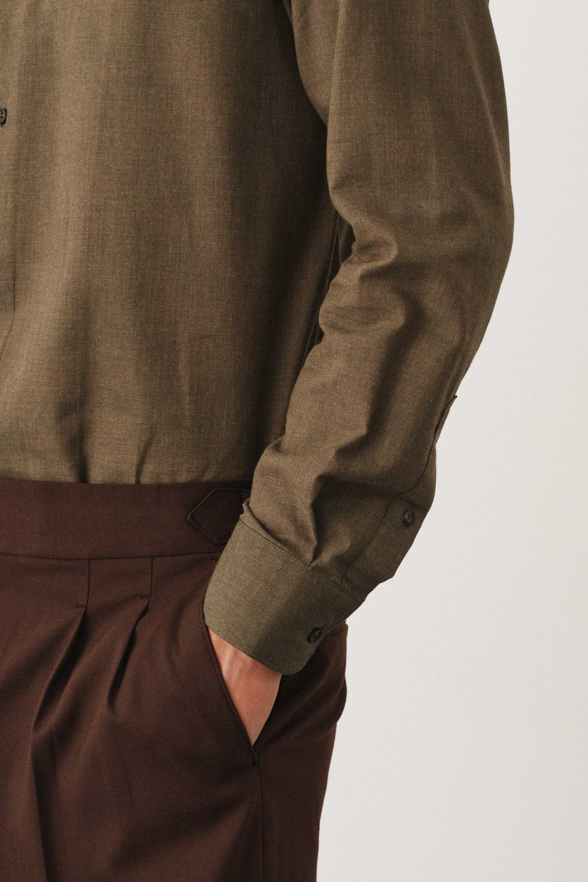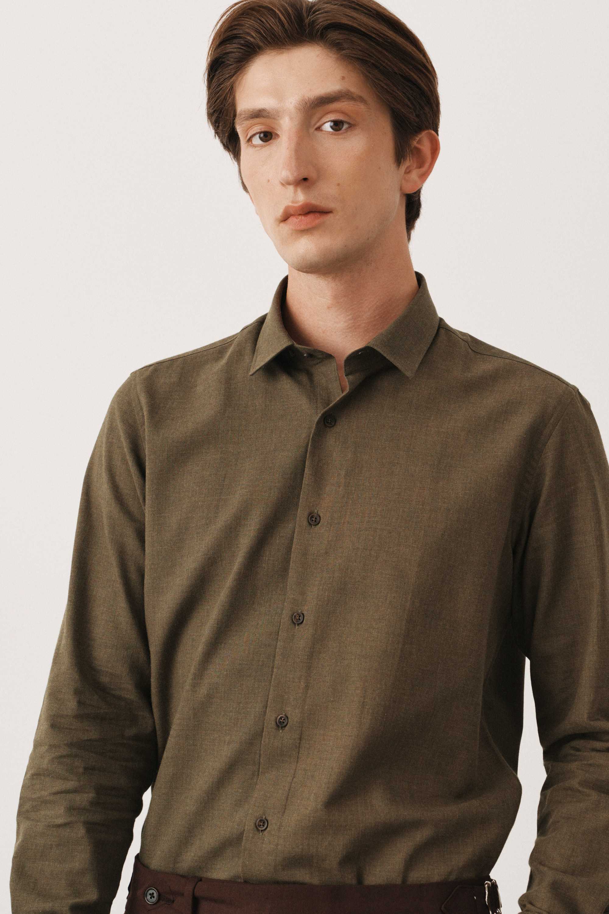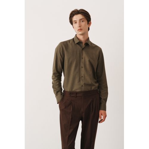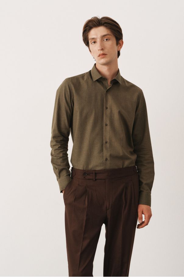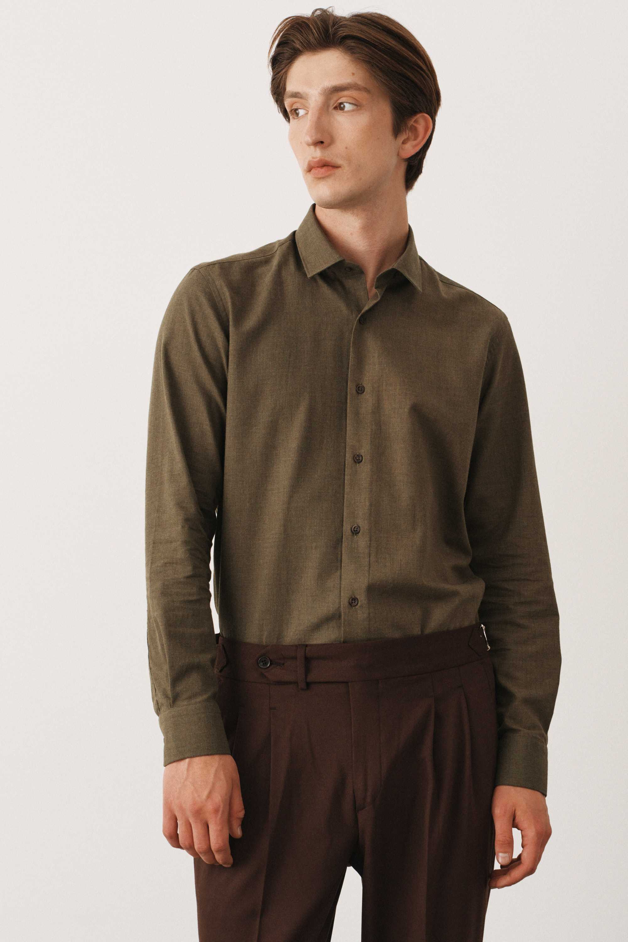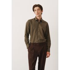 Рубашка зеленая, ткань в диагональную фактуру, классика воротник