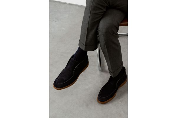 Пальто сине-бежевое из ткани с диагональной фактурой