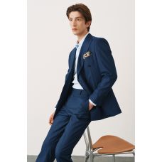 Комплект на корпоратив с двубортным костюмом в широкую полоску (костюм, рубашка, нагрудный платок, обувь)
