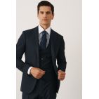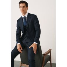 Комплект на корпоратив с синим костюмом в мелкую полоску (костюм, рубашка, галстук, обувь)