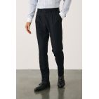 Комплект на корпоратив с темно-синим пиджаком в мелкую голубую клетку (пиджак, рубашка, обувь, брюки)