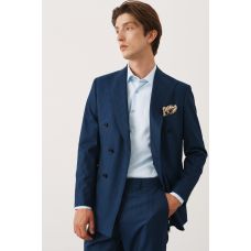 Комплект на свадьбу с синим двубортным костюмом в полоску (костюм, рубашка, обувь, нагрудный платок)
