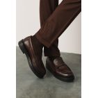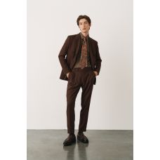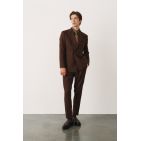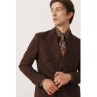Комплект на выпускной с двубортным коричневым костюмом с накладными карманами (костюм, рубашка, обувь, галстук)