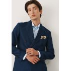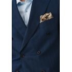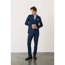 Комплект на выпускной с синим двубортным костюмом в полоску (костюм, рубашка, обувь, нагрудный платок)