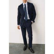 Комплект на выпускной с синим костюмом в двойную полоску из деликатной шерсти (костюм, рубашка, обувь, галстук)