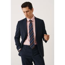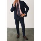 Комплект на выпускной с темно-синим костюмом в тонкую полоску из деликатной шерсти (костюм, рубашка, обувь, галстук)